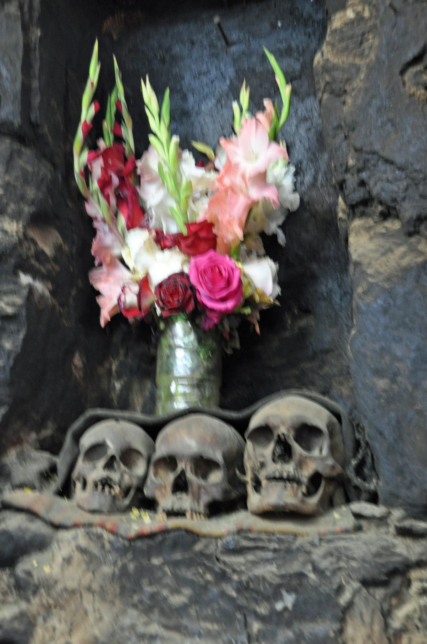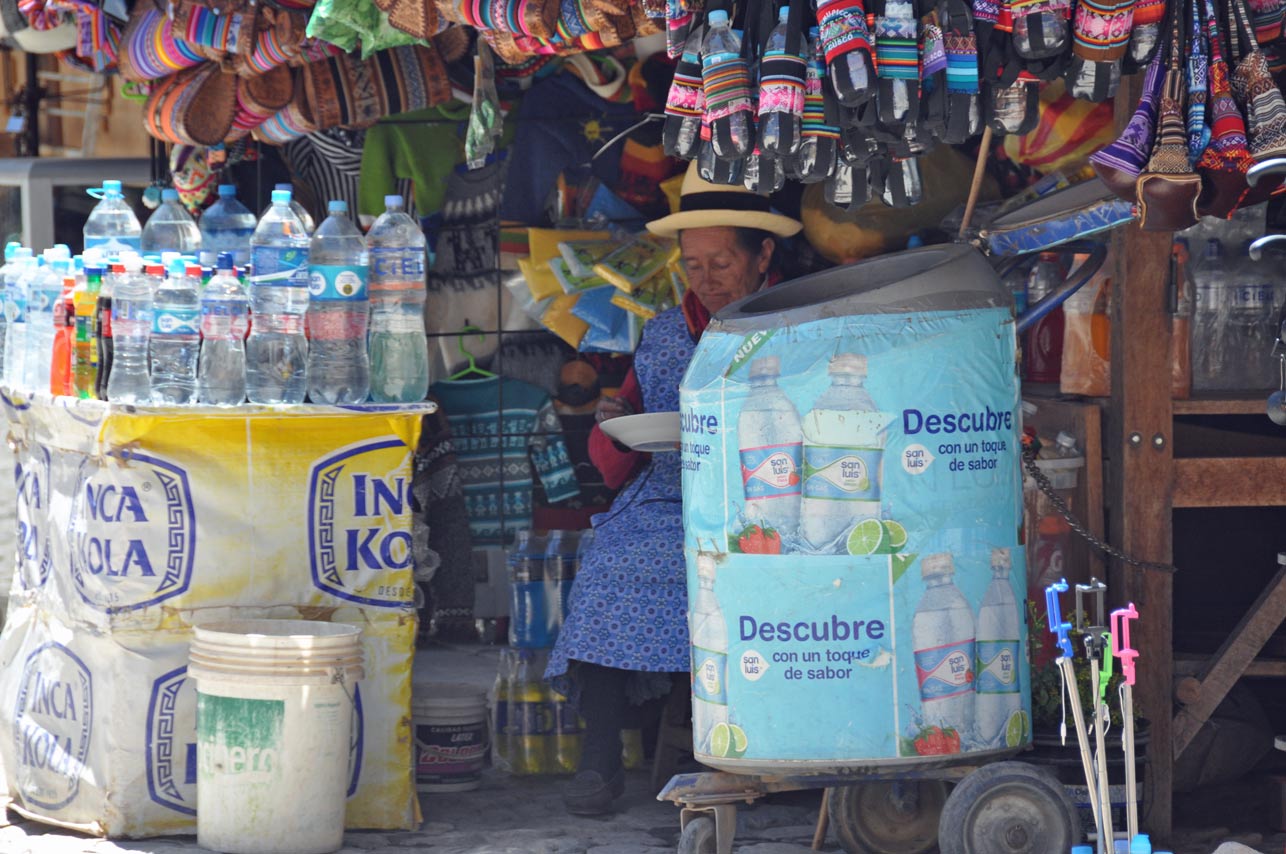 Towns along the main road have endless restaurants with ladies standing at the side waving rotisserie guinea pigs looking very like roast rats, in an attempt to lure people in for lunch – not tempted. But the house also includes a lot of totems or charms which are a bit gruesome and sit somewhat uneasily with the catholicism we were expecting, including lama foetuses (apparently very expensive), skulls from dead relatives etc.