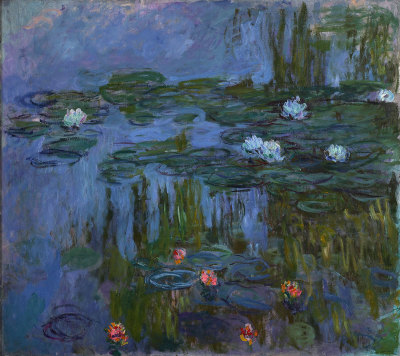 Towards the end of his life, and devastated by the death of his wife, Monet stopped painting for a while. In 1914 he started to work on numerous canvasses of his water garden. He began to paint the water lilies on very large canvasse for which he built a special studio.