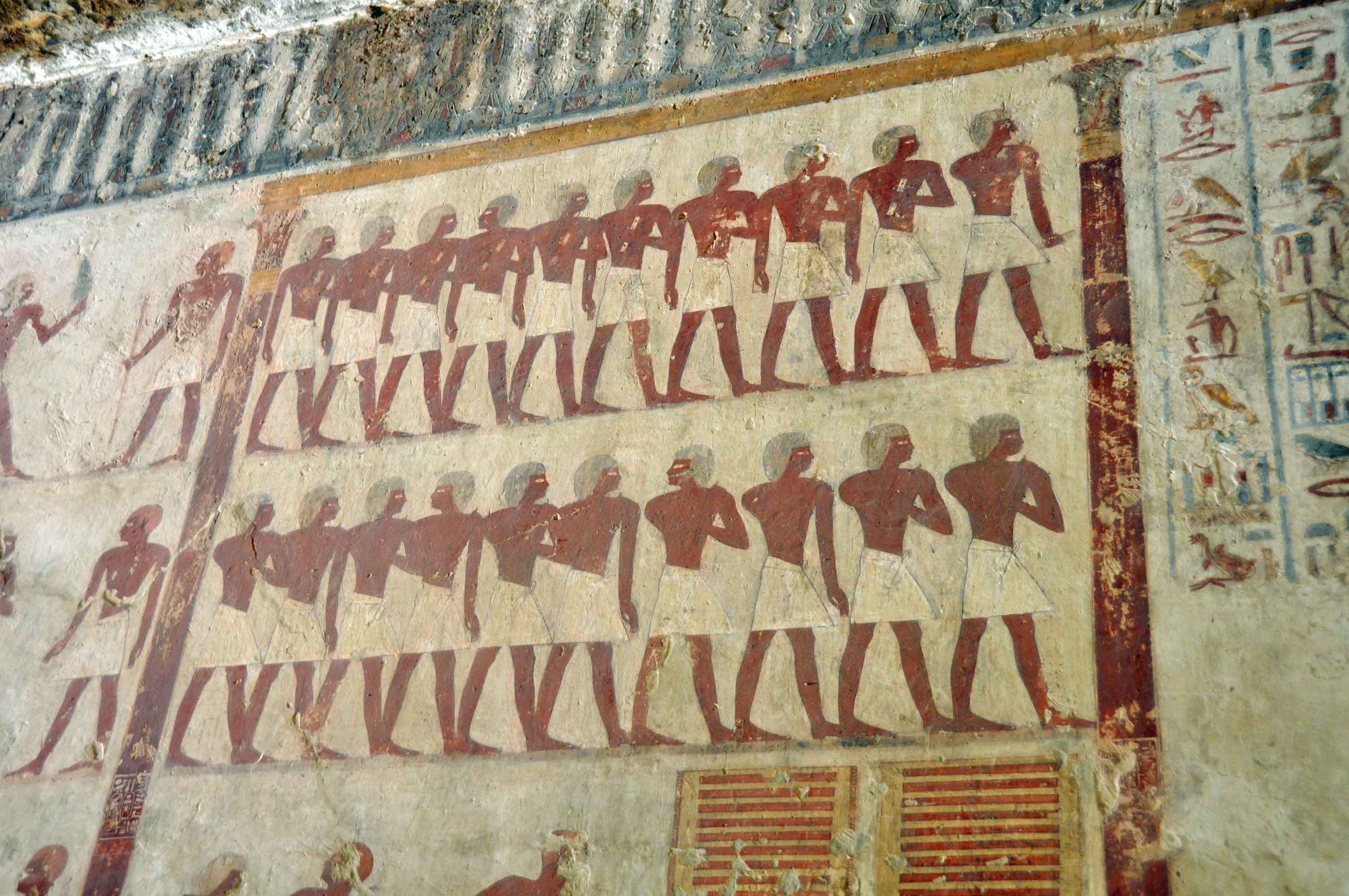 Saqqara is a large necropolis on the plateau above the Nile Valley, the location of tombs and pyramids dating to the Predynastic, Old Kingdom, New Kingdom and Late Periods of ancient Egyptian history.