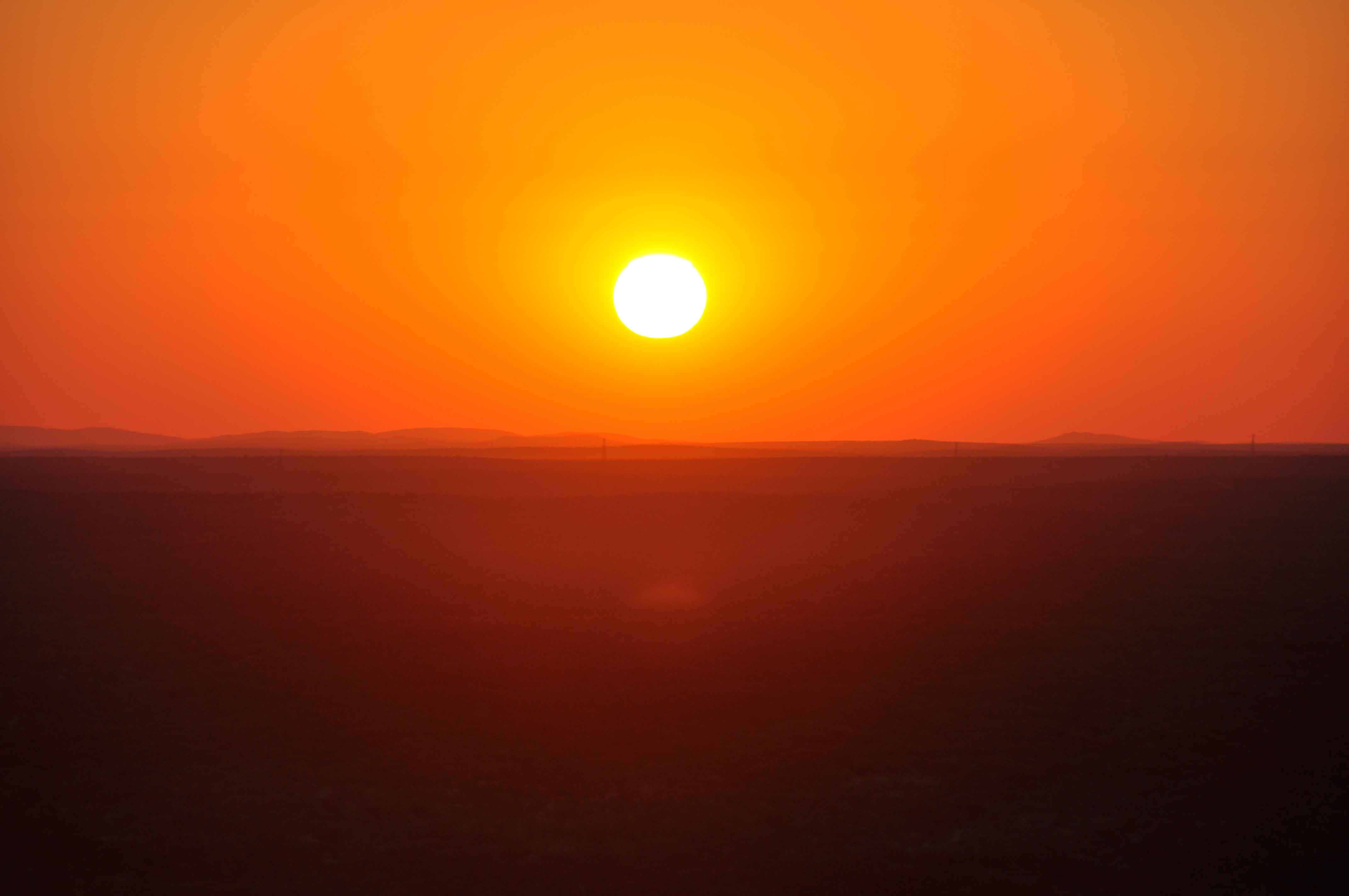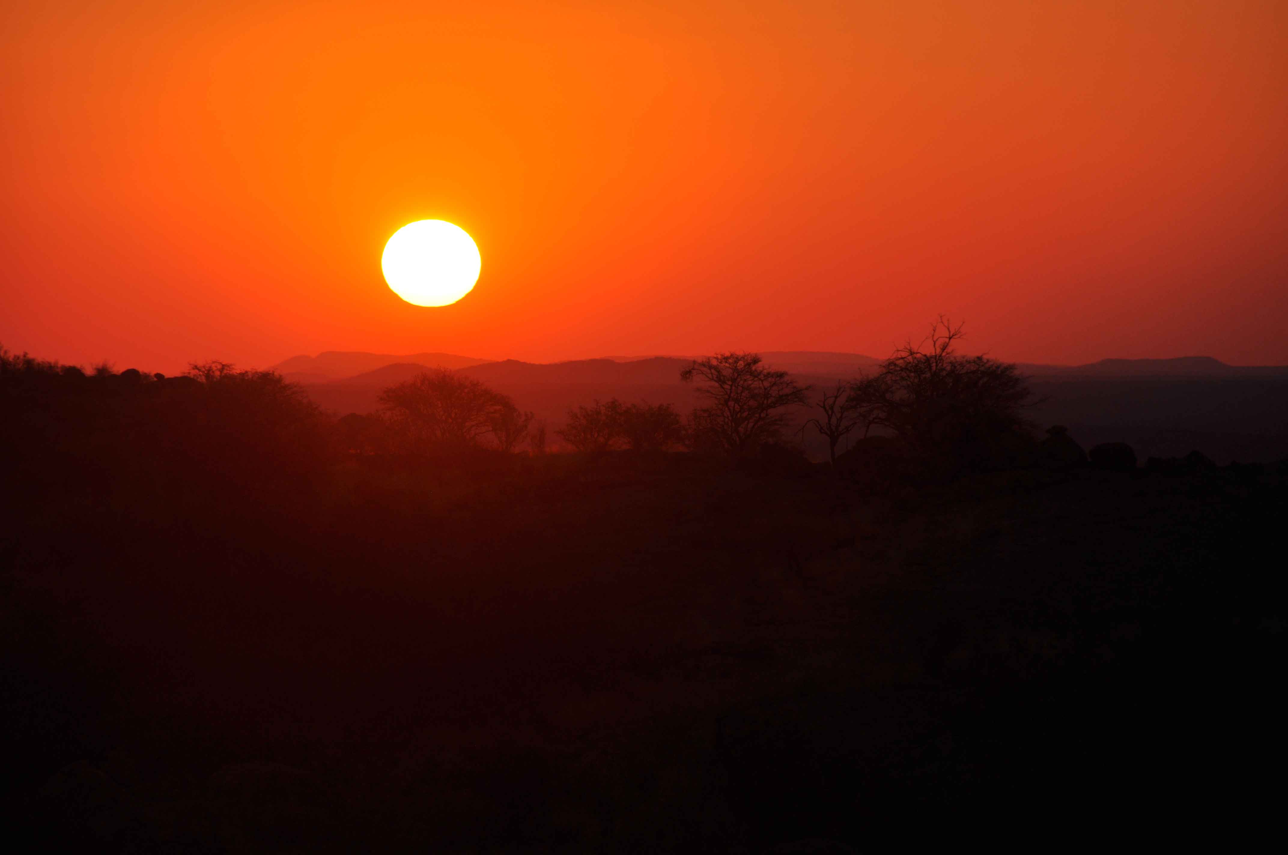 The whole of the sky lights up at sunset, to be followed by a sudden sharp and total black before the stars appear.