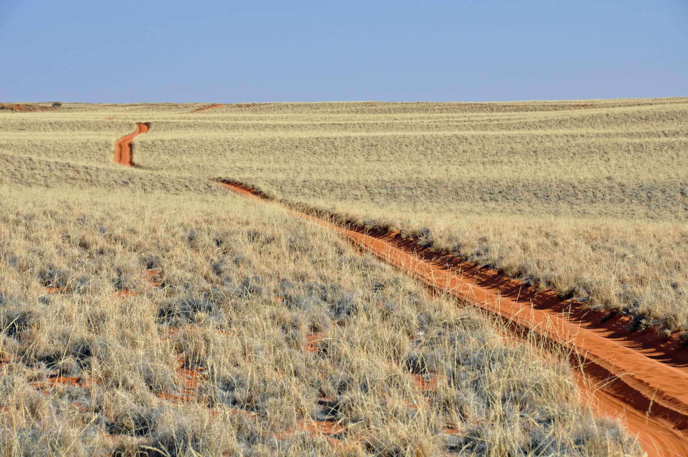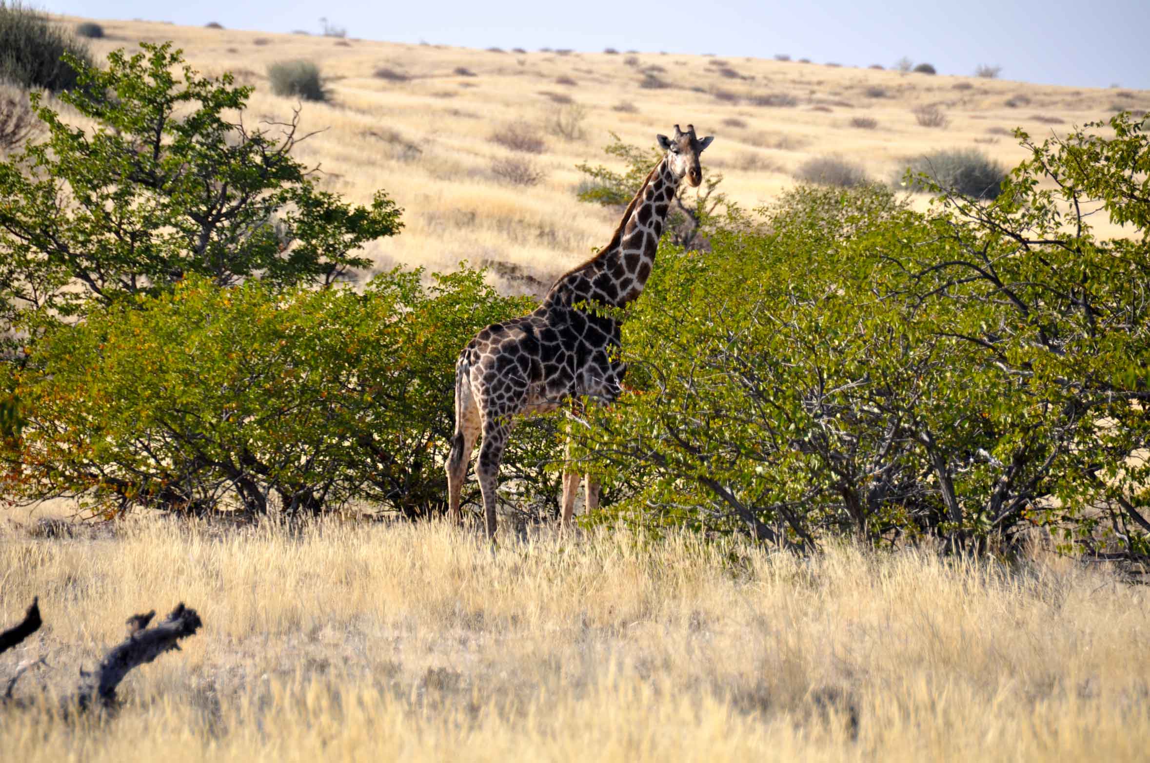 Most of Namibia is desert or, what to my European eyes, appears to be vast dry and unproductive land spreading as far as the eye can see. And yet in the middle of these vast expanses, huge animals, elephants, giraffe etc somehow manage to appear and disappear like magic.