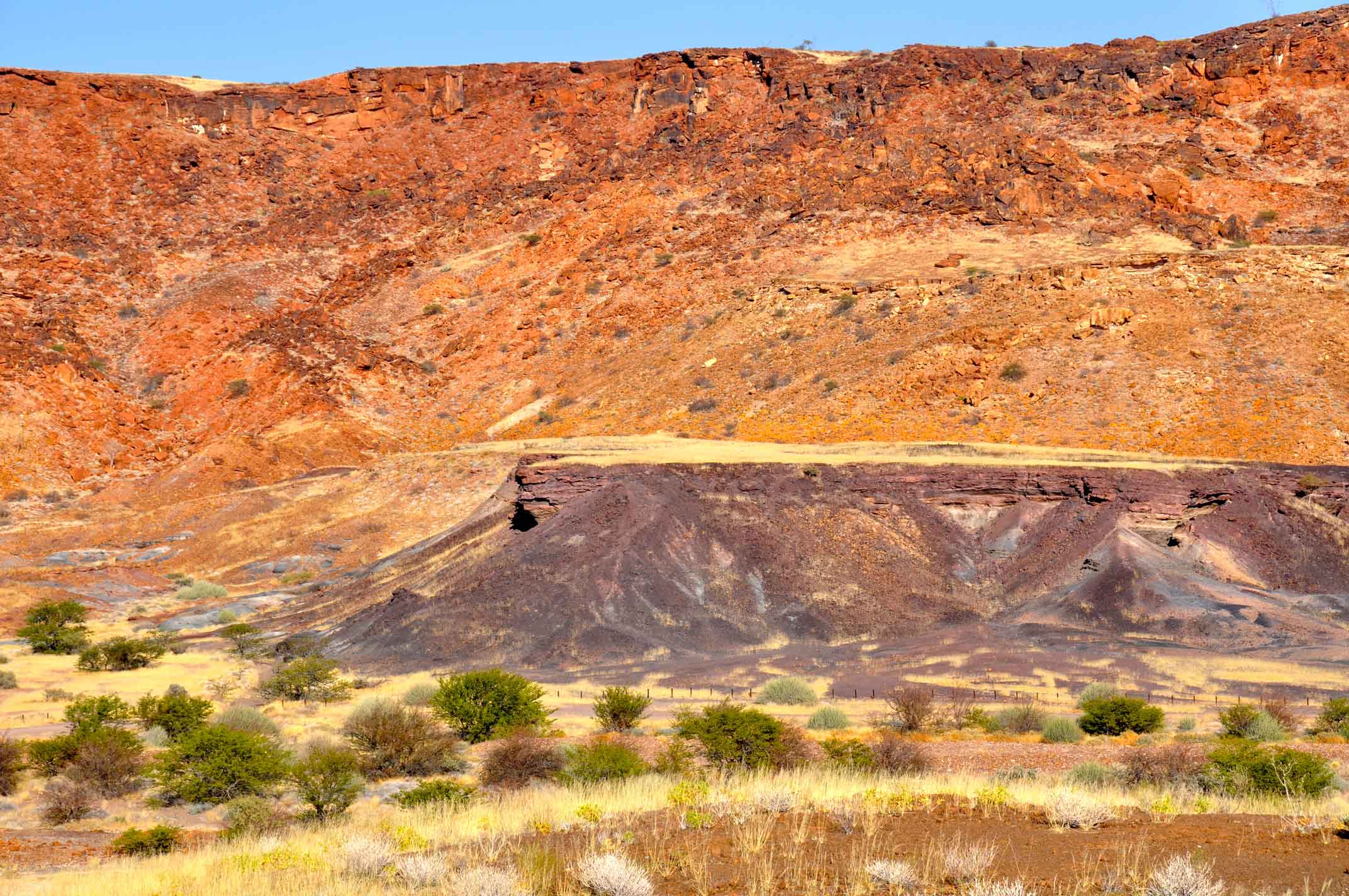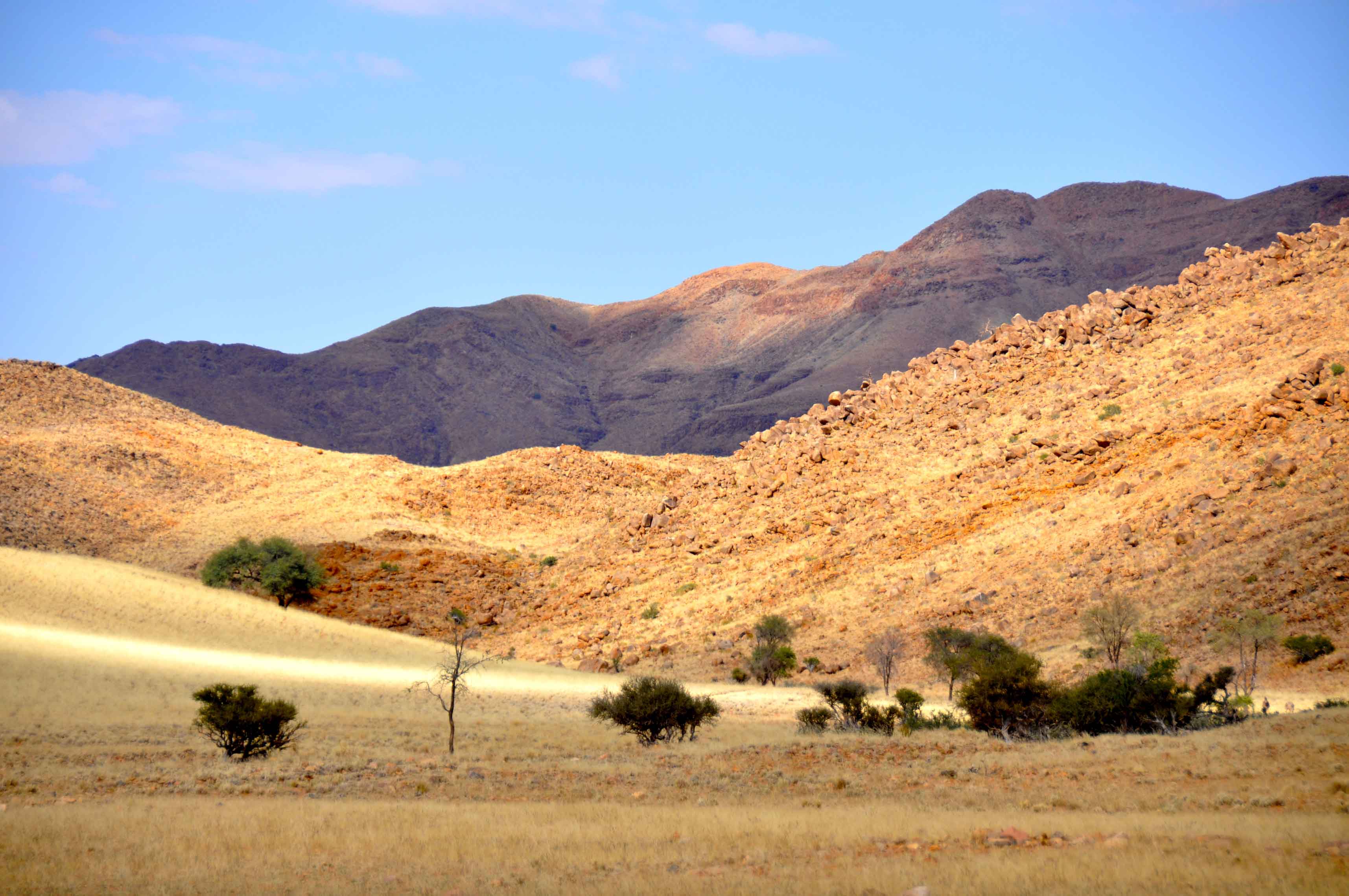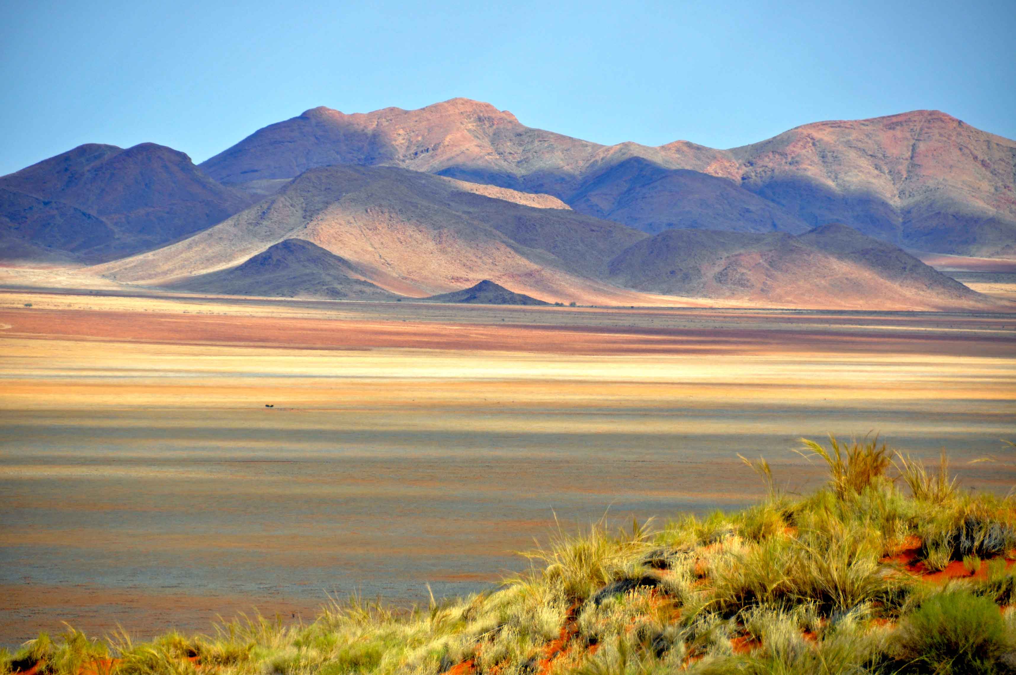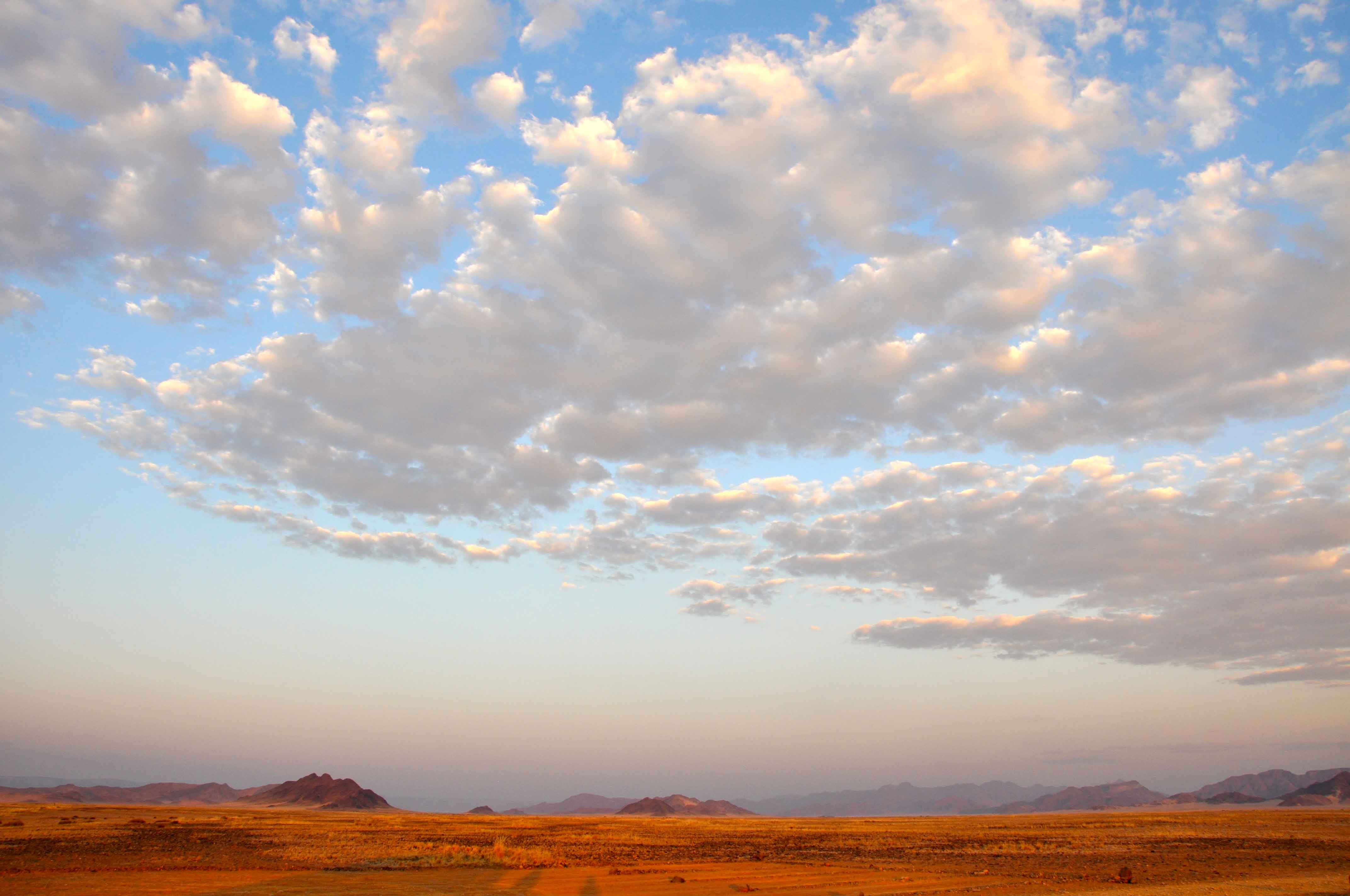 The Namib desert is vast and glorious, stretching down to the ocean. Annual precipitation ranges from 2 mm in the most arid regions to 200 mm at the escarpment, making the Namib the only true desert.