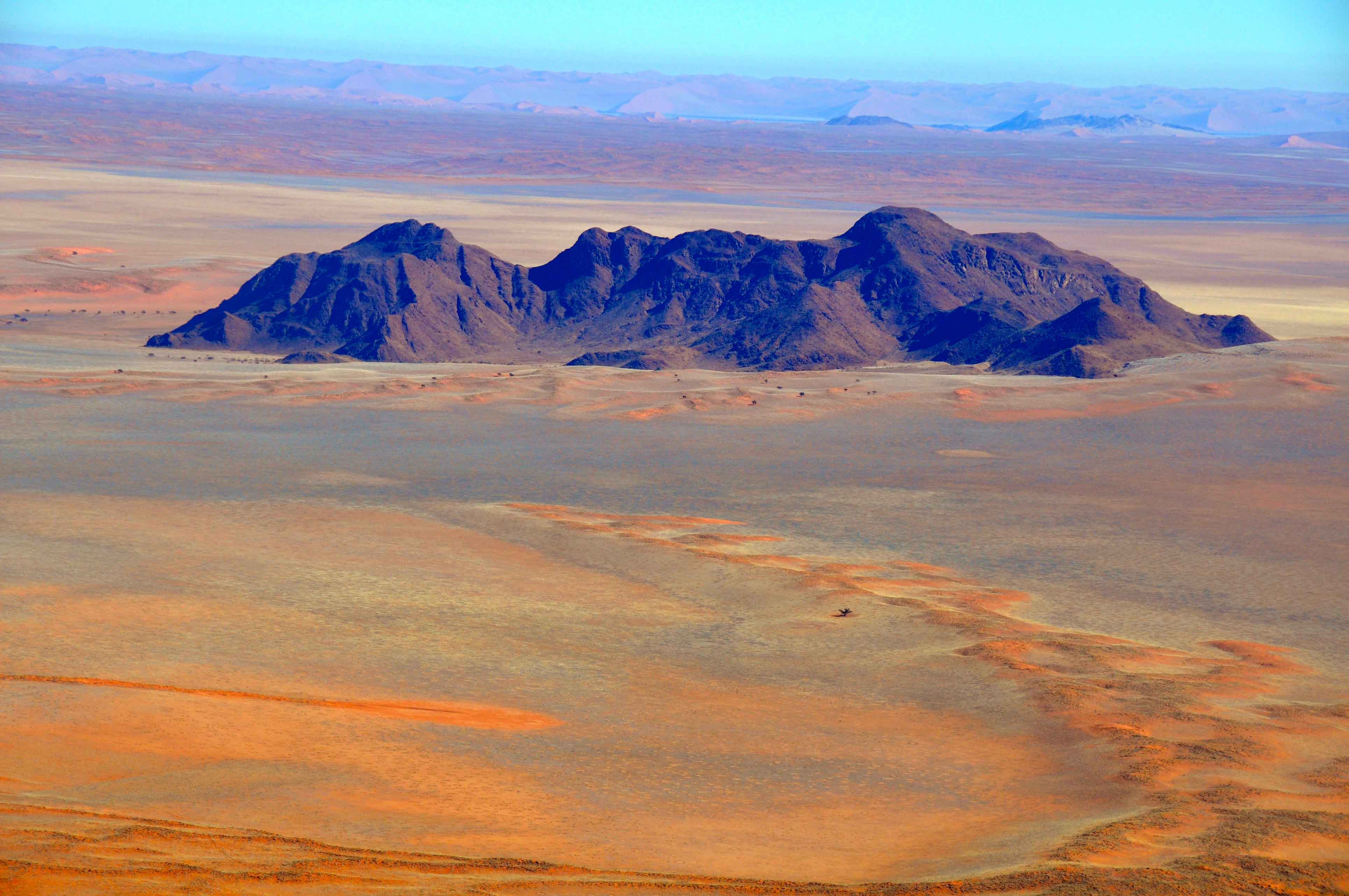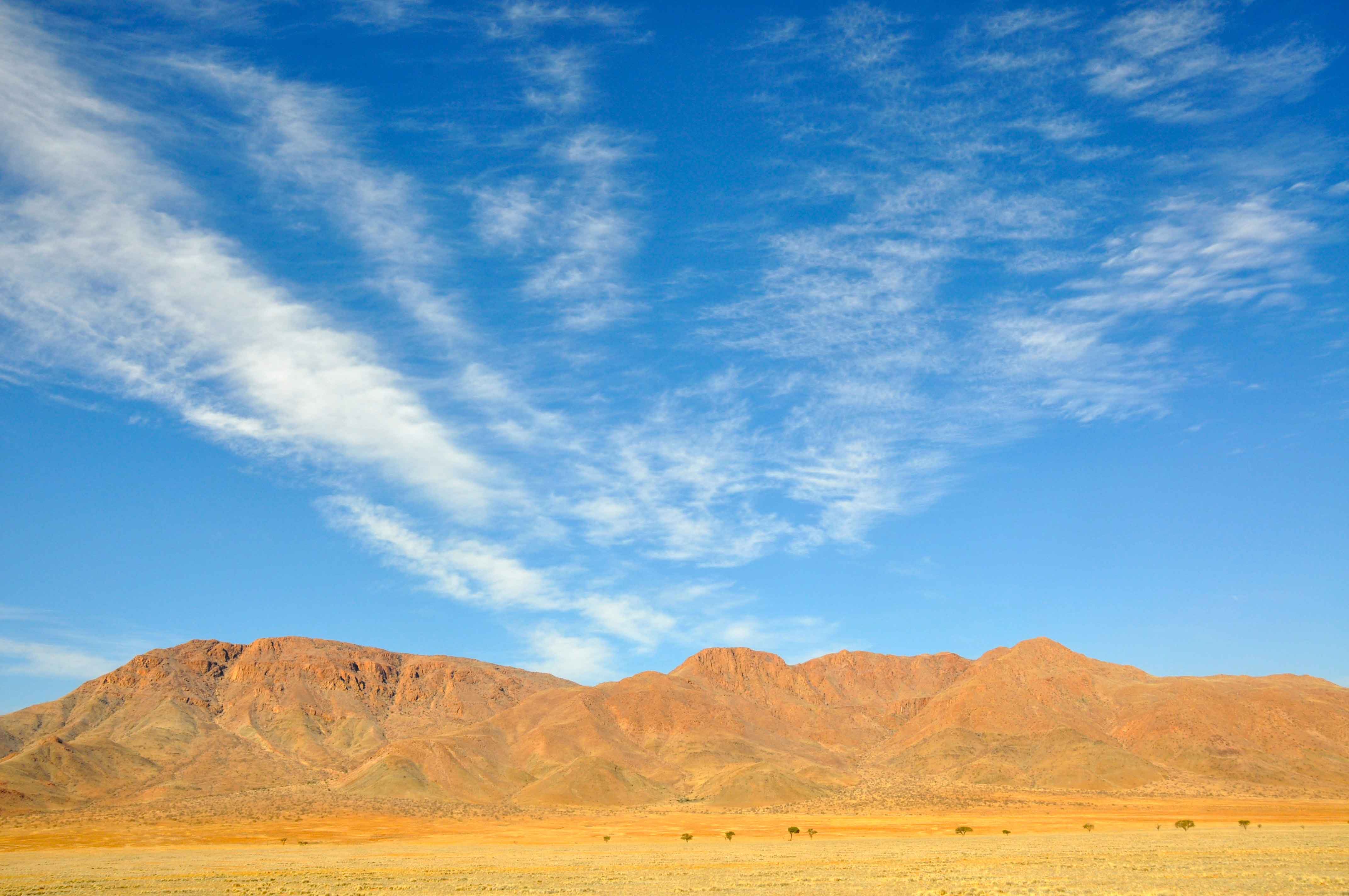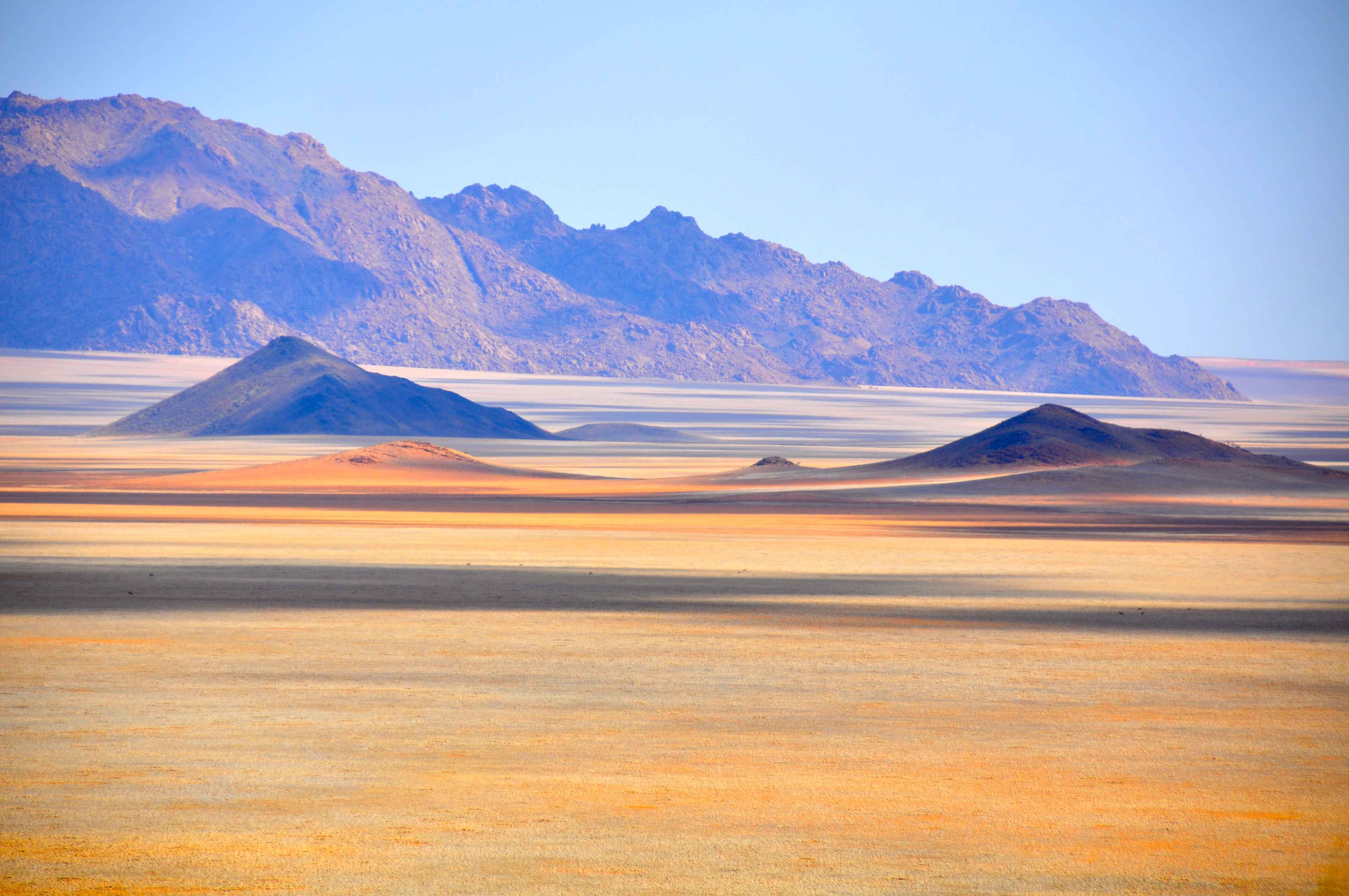 Most of Namibia comprises desert and desert-like plains. To the south, the Namib desert stretches out, before your eyes.