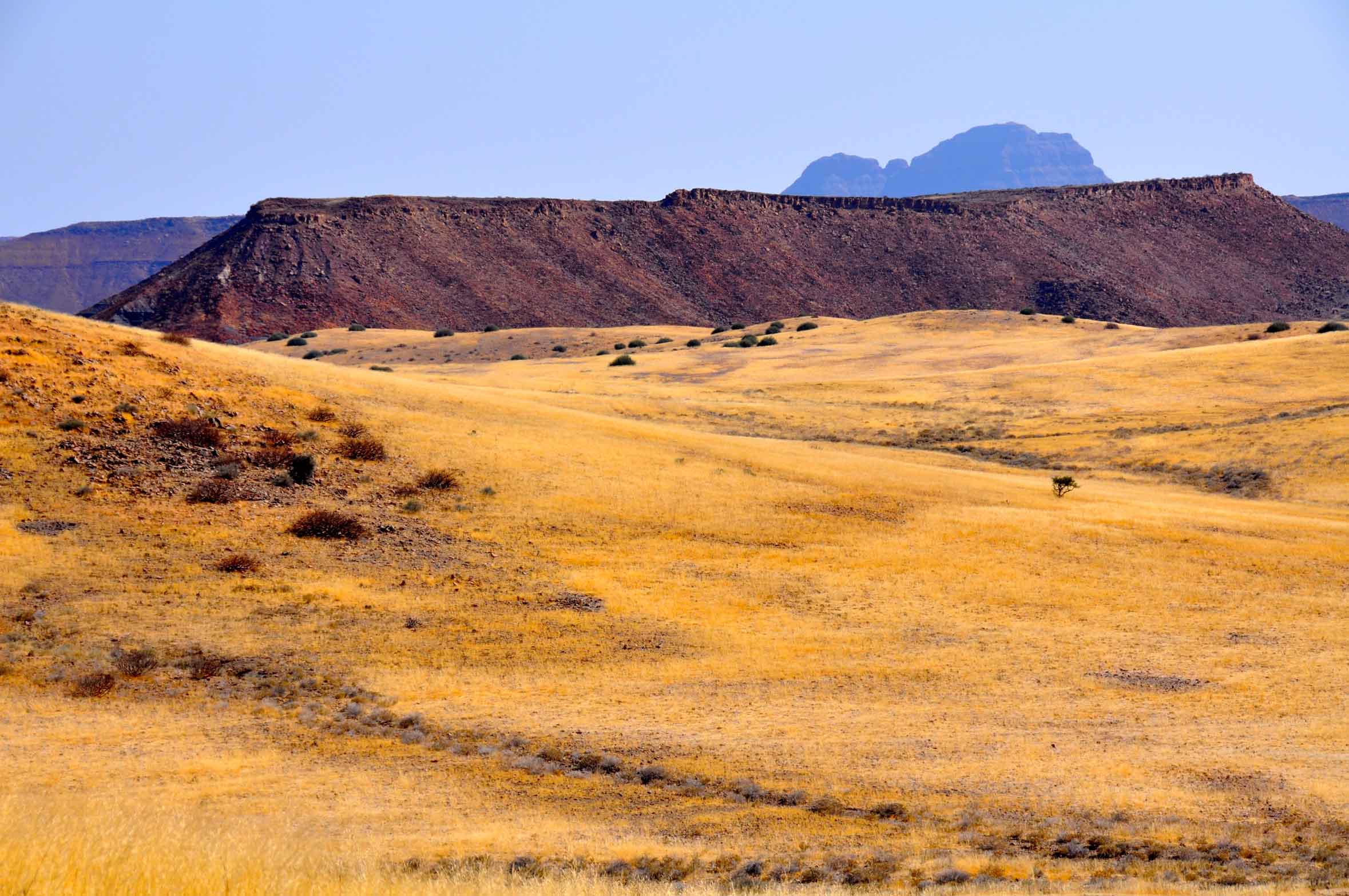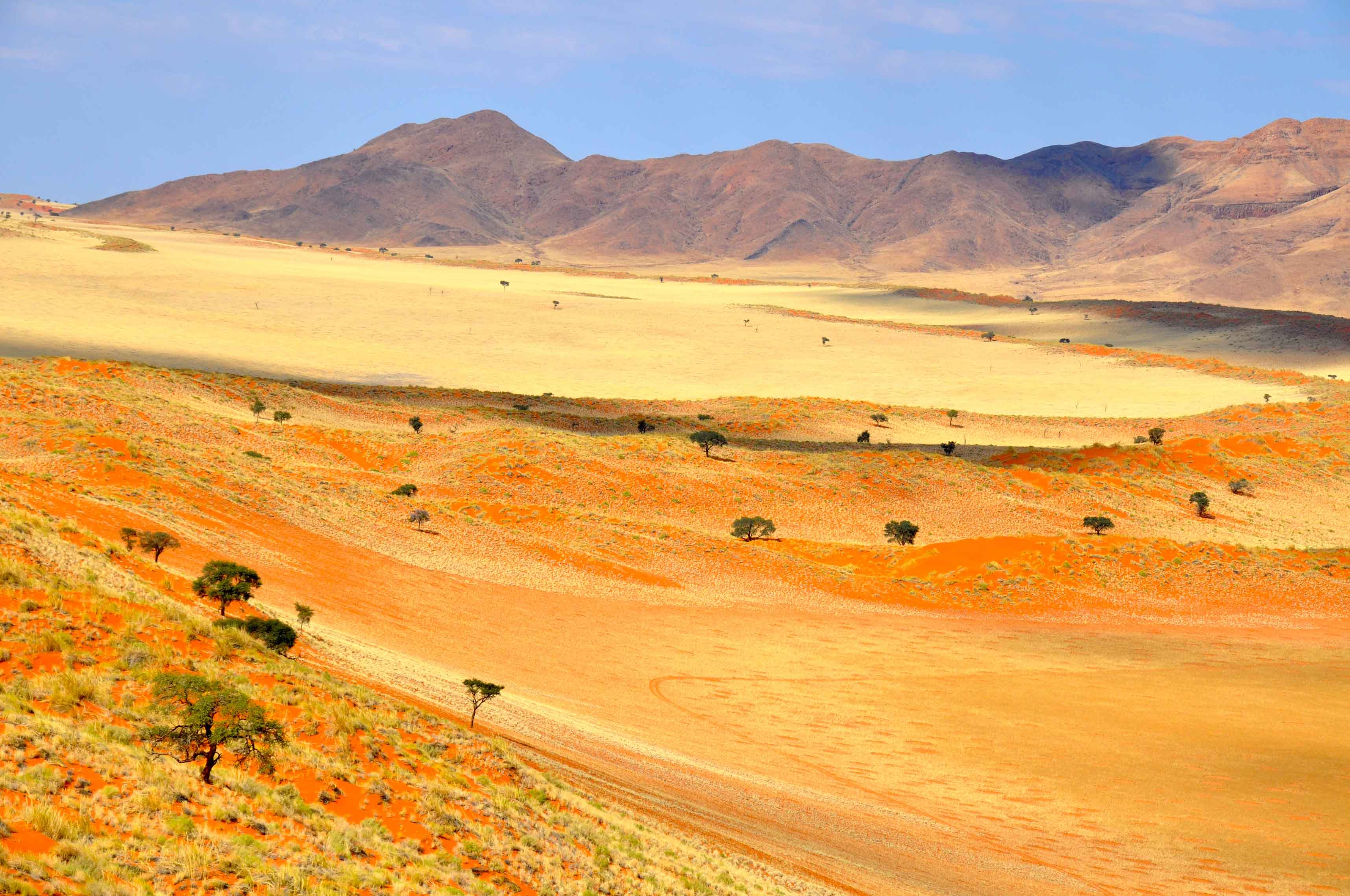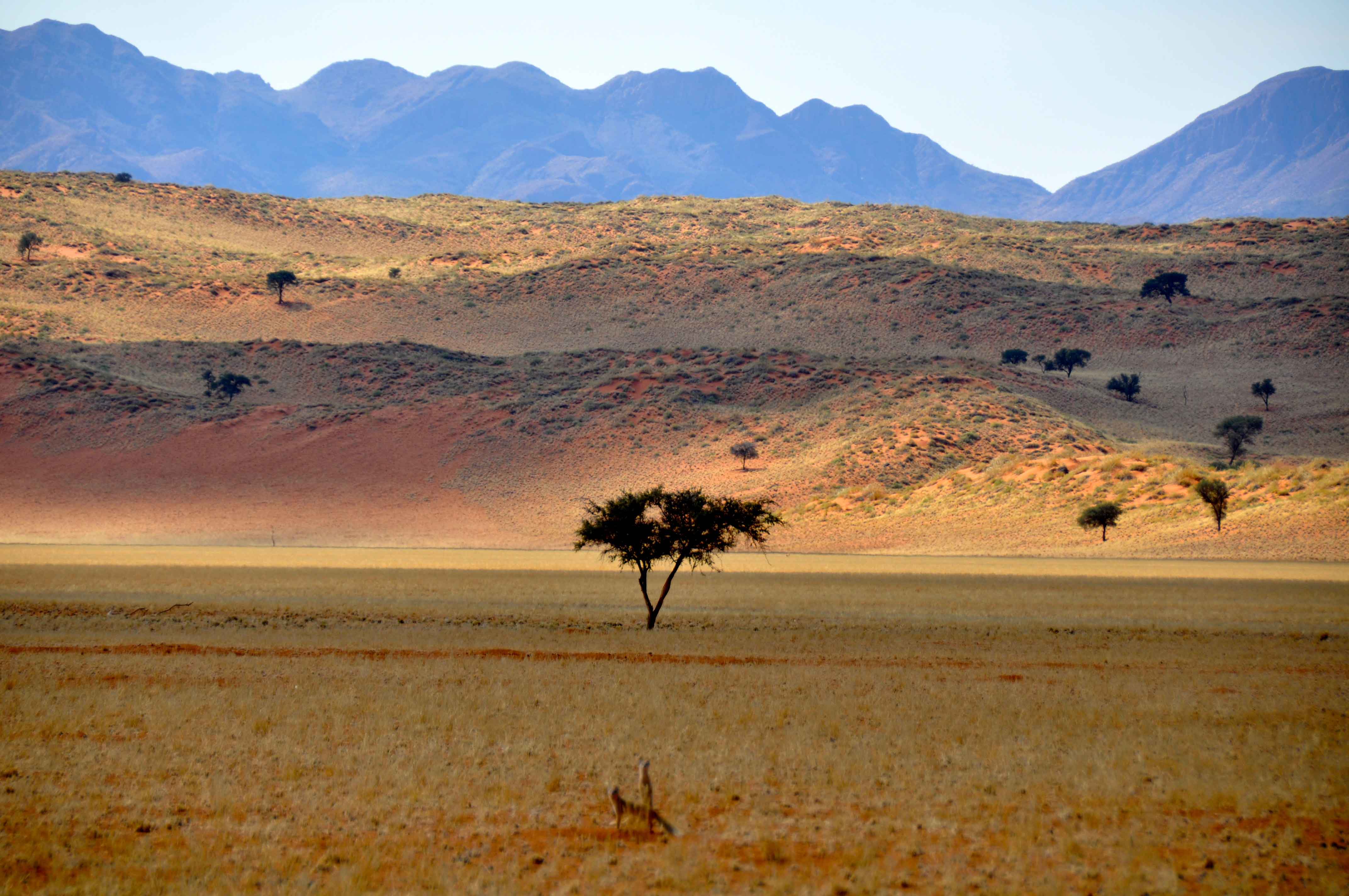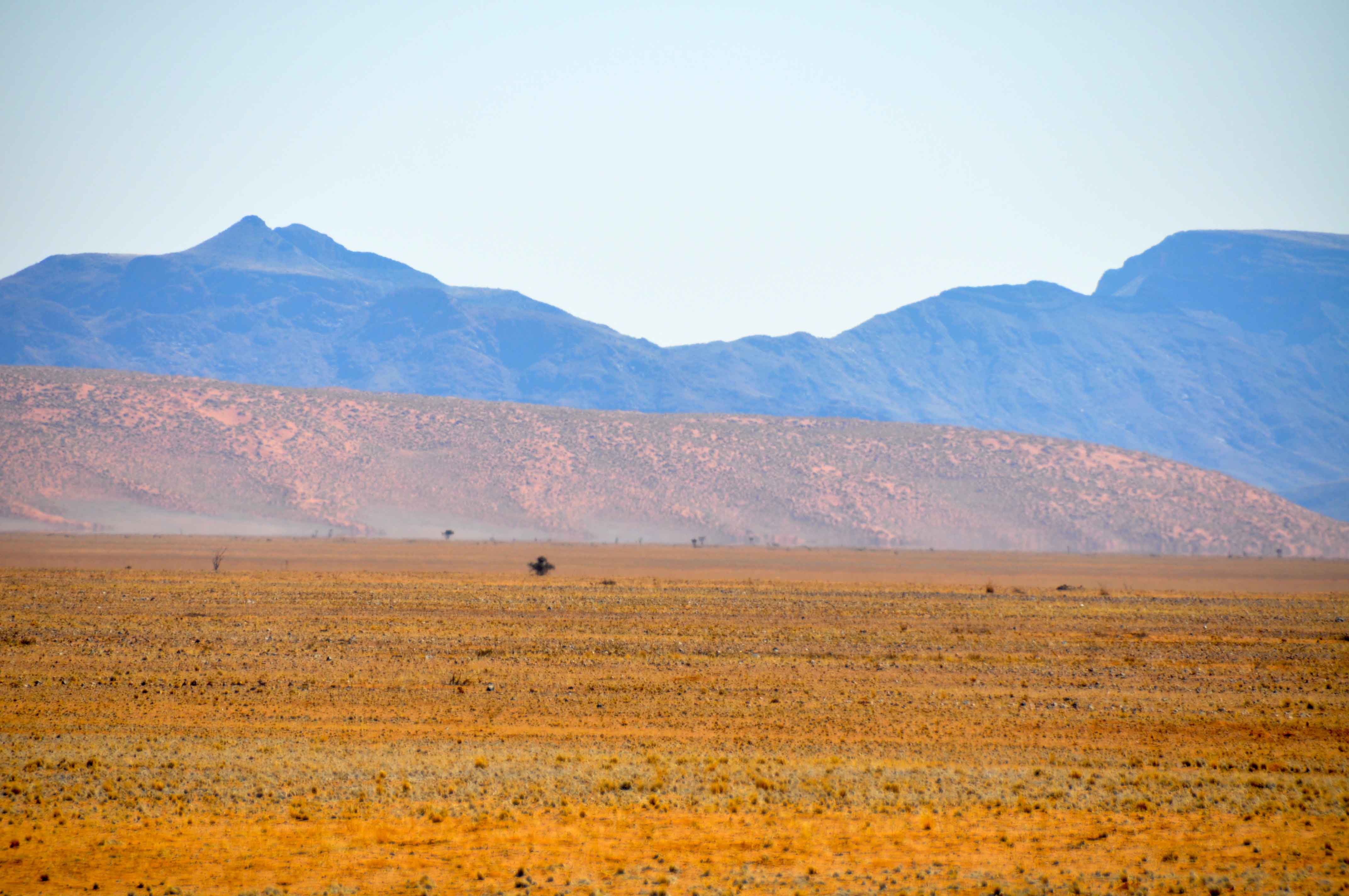 Most of Namibia comprises desert and desert-like plains. To the south, the Namib desert stretches out, before your eyes.
