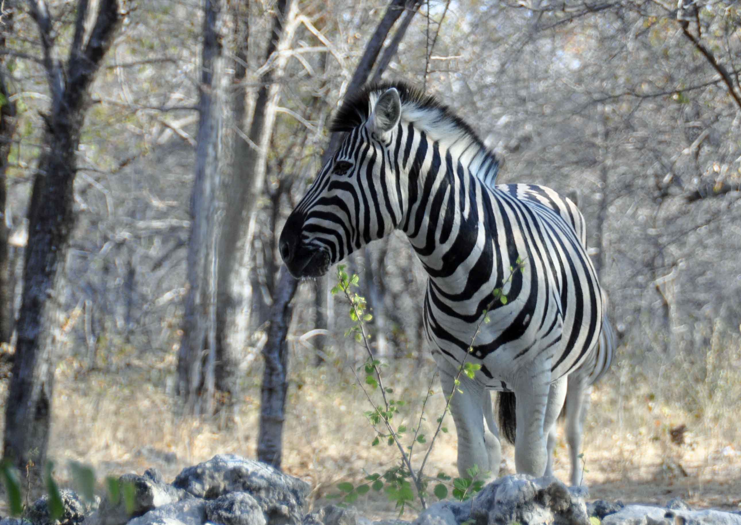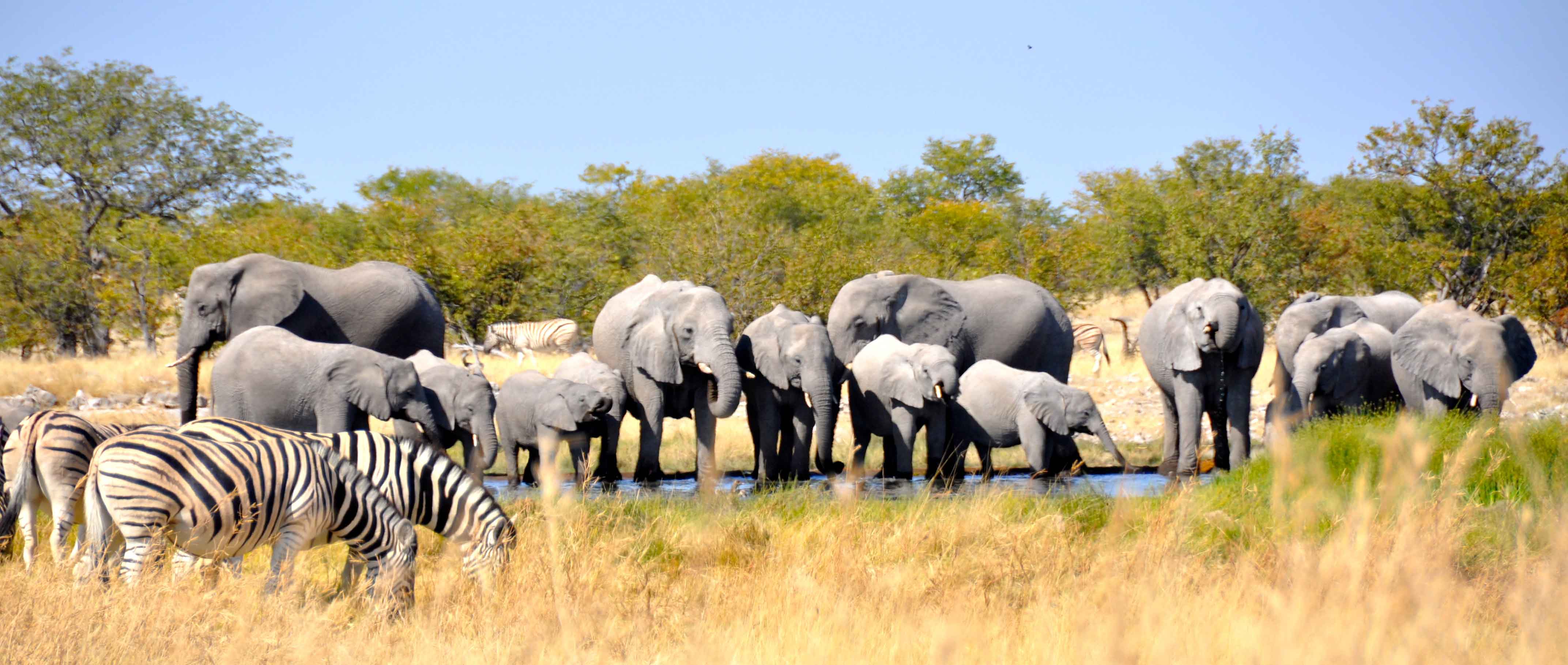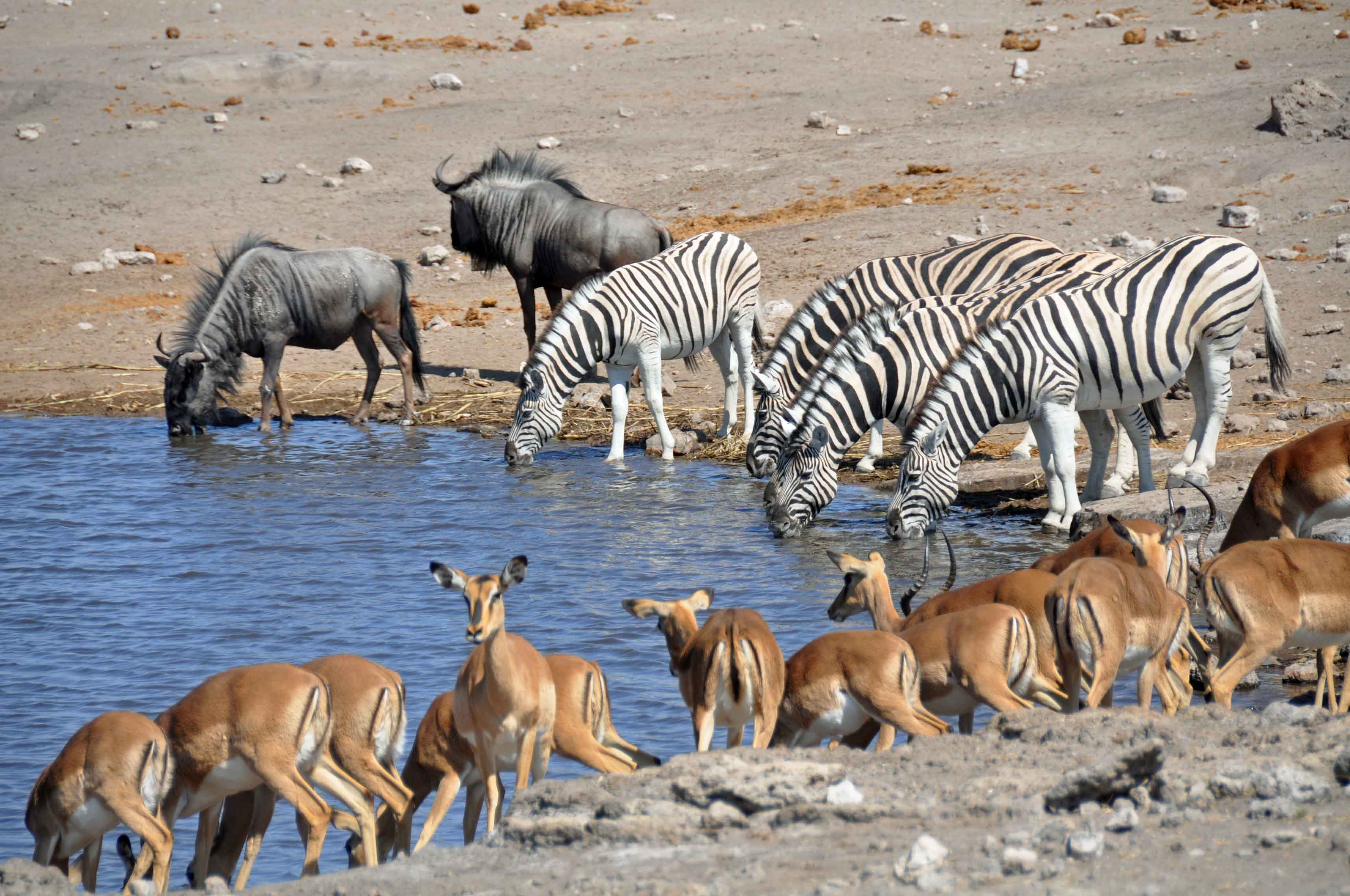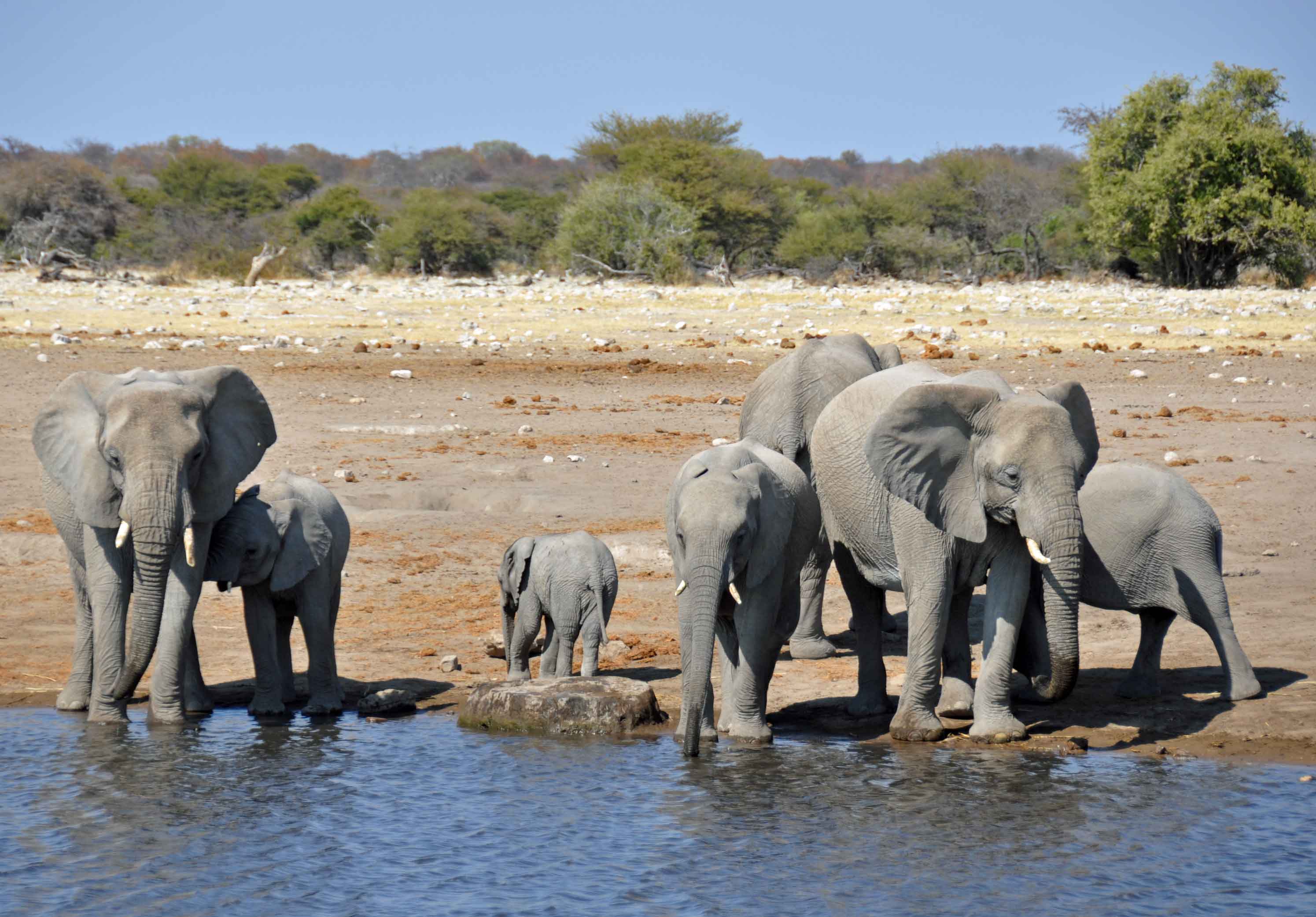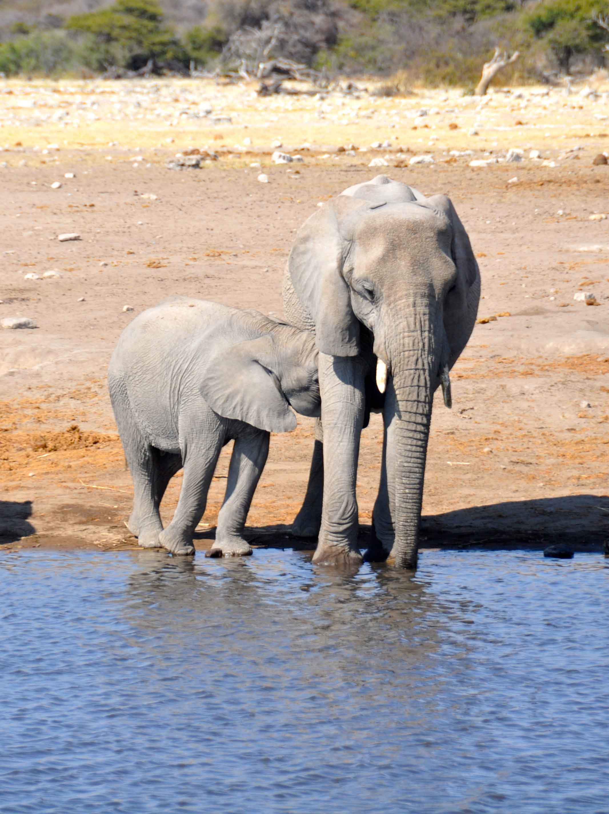 Waterholes remain even during the dryest season though, and one of the most surreal experiences has to be parking up to eat some sandwiches for lunch, only to find yourself surrounded first by elelphants and then by all of the other animals parked up waiting for the water to be free. Including the Namibian national animal