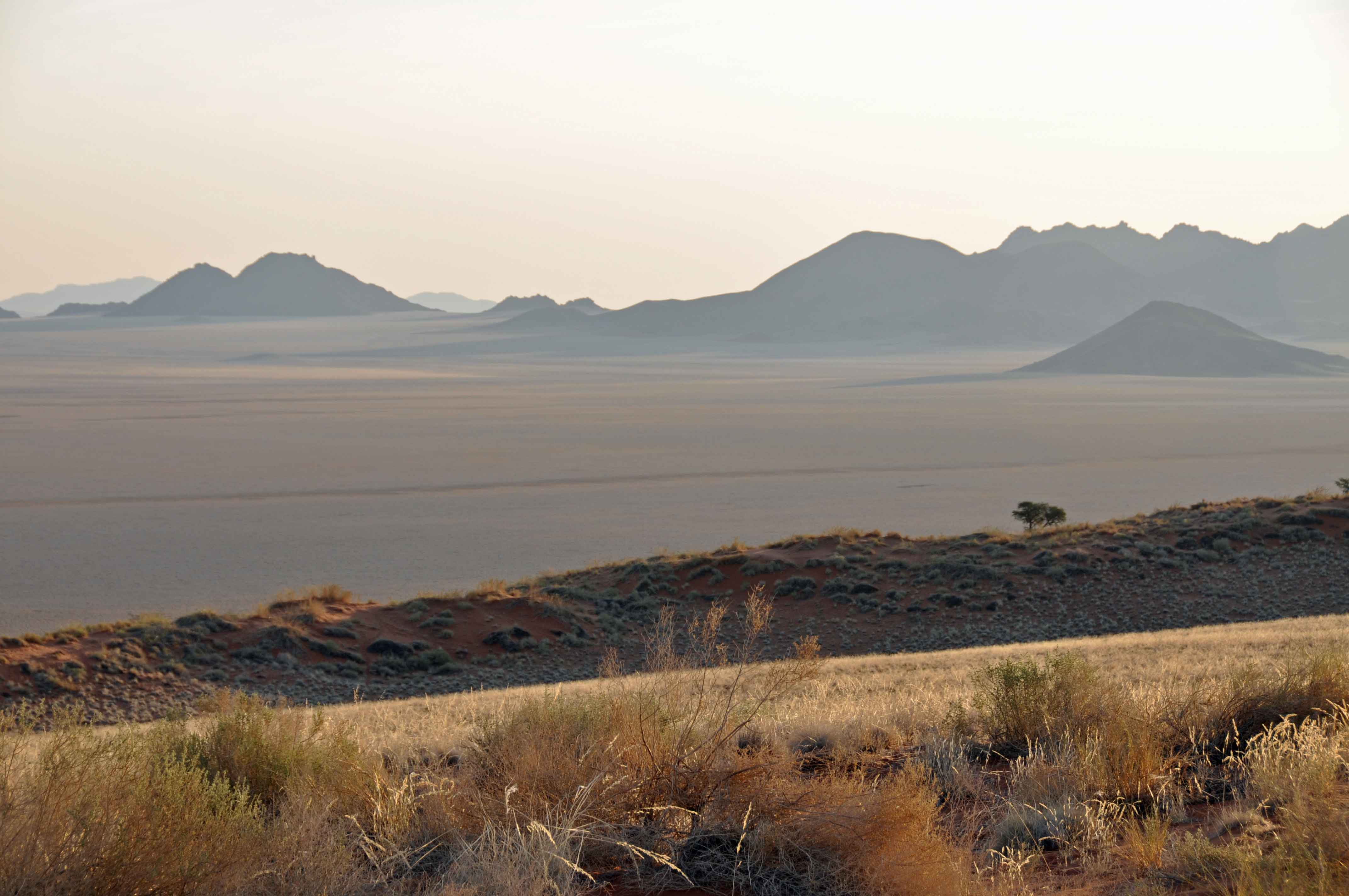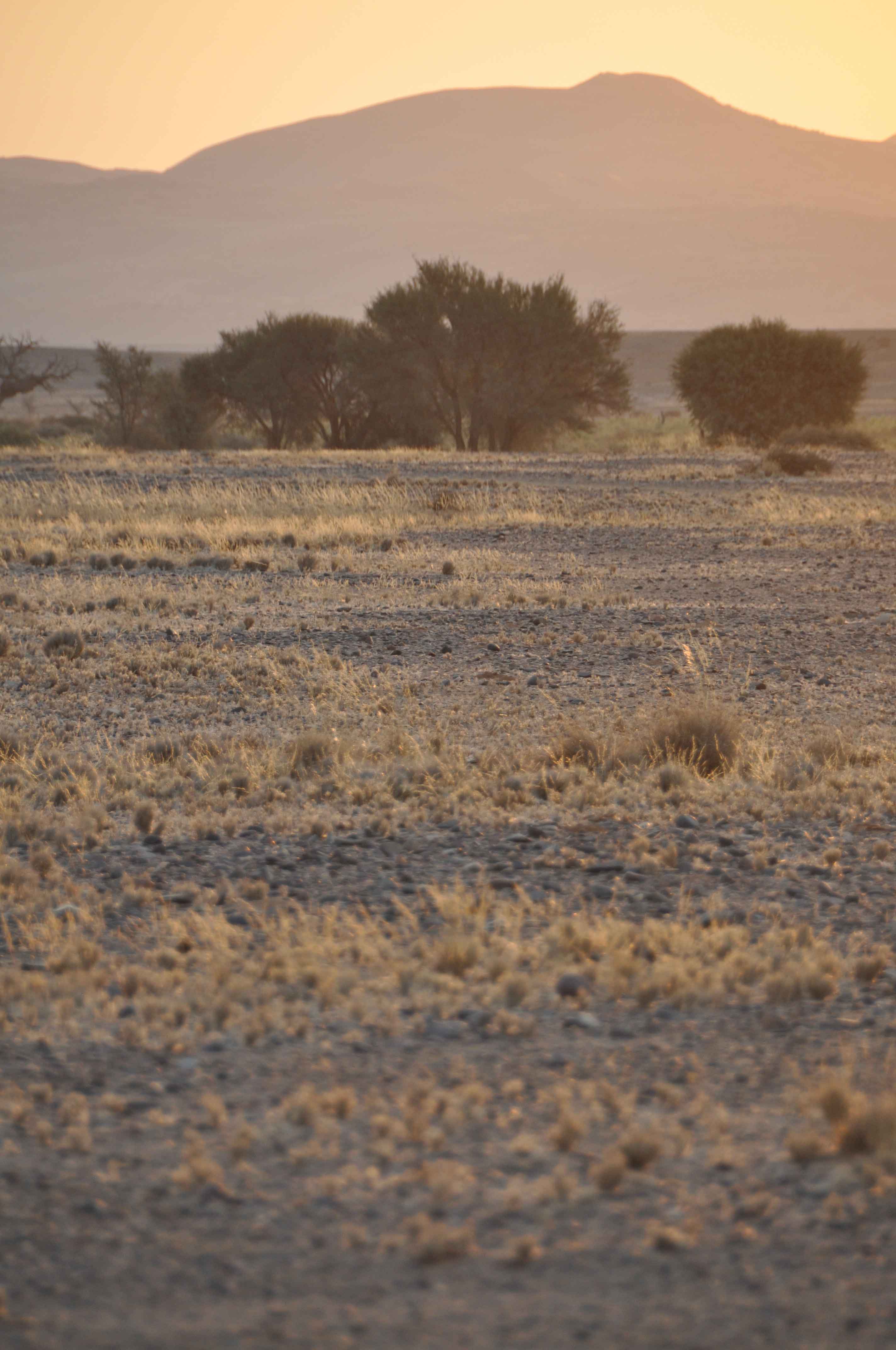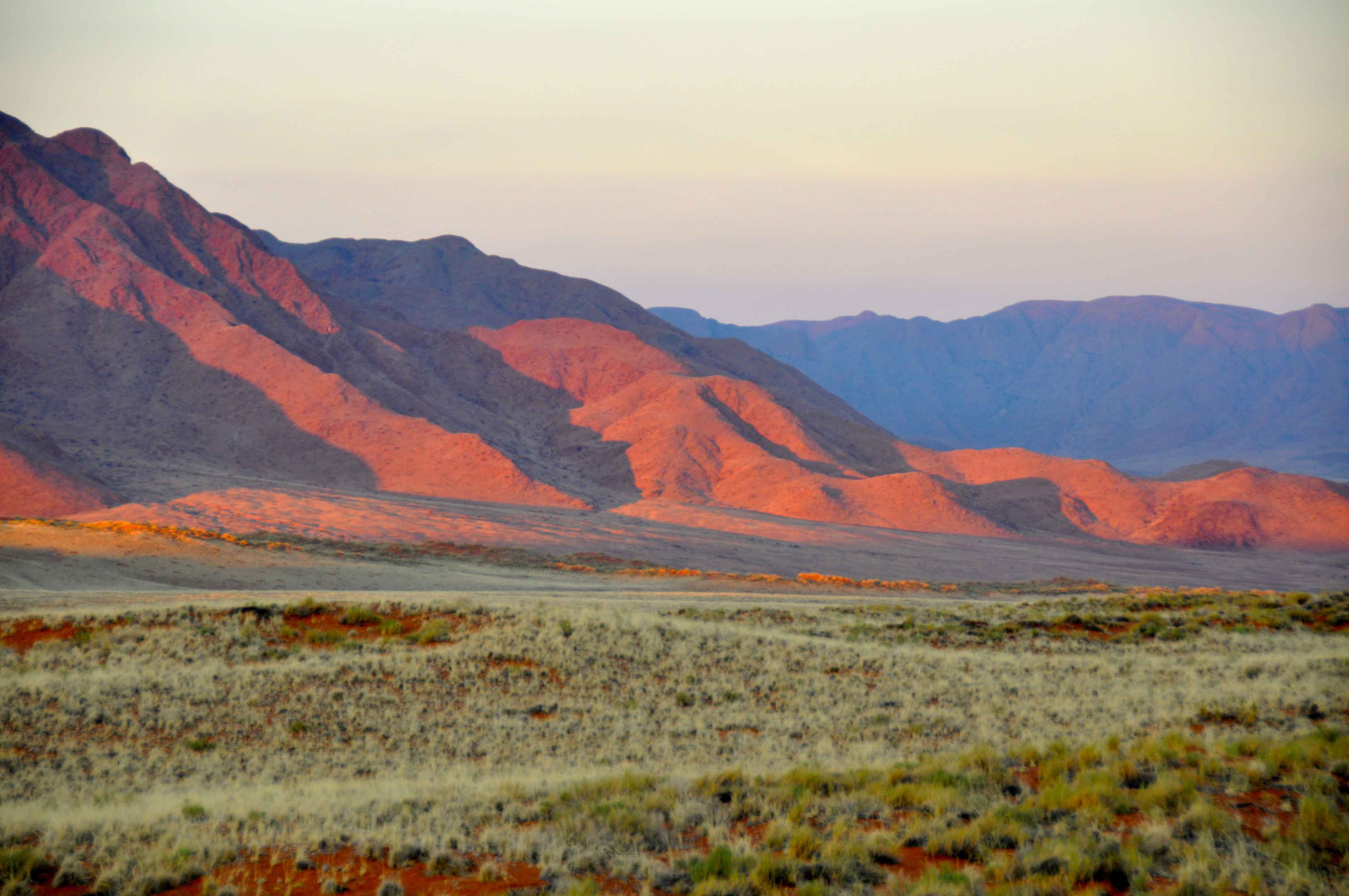 in southern Africa. Much of the precipitation is in the form of fog that rolls in from the ocean to the west. Mist in the morning or at least a general haze, made for grey and a very delicate pink colour.