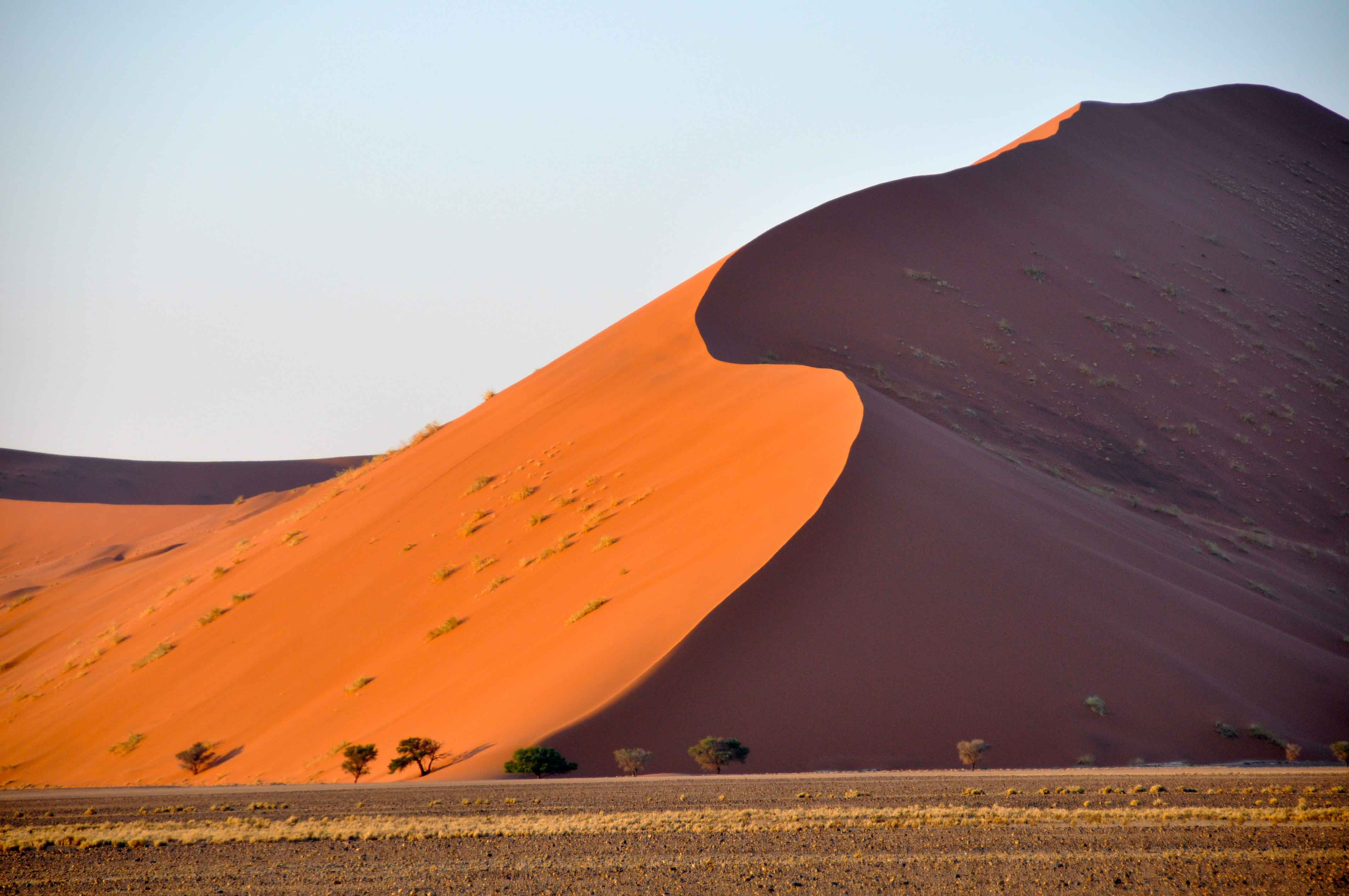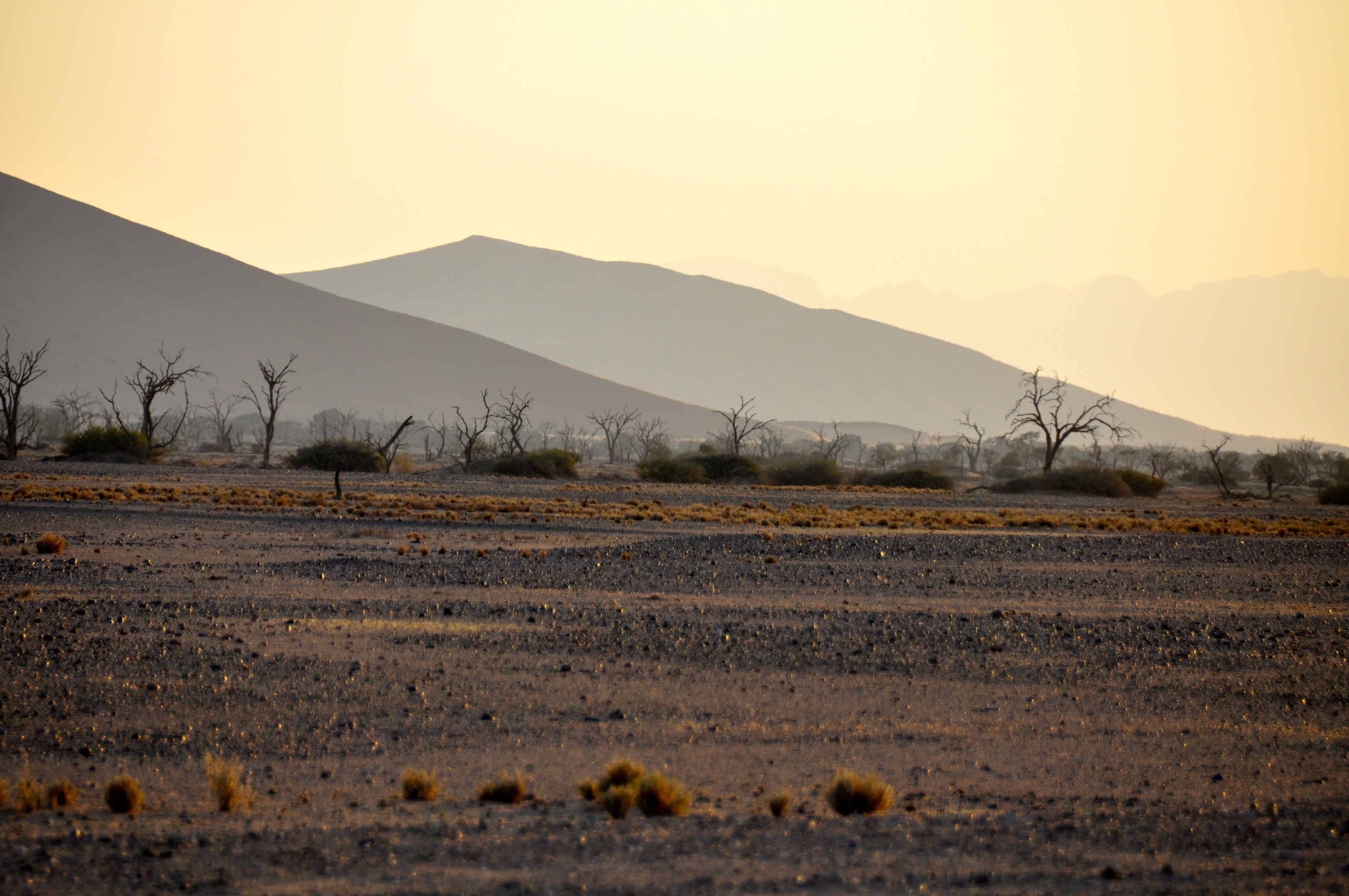 Here, the dunes are static rather than the moving mountainous waves near Sossusvlei.