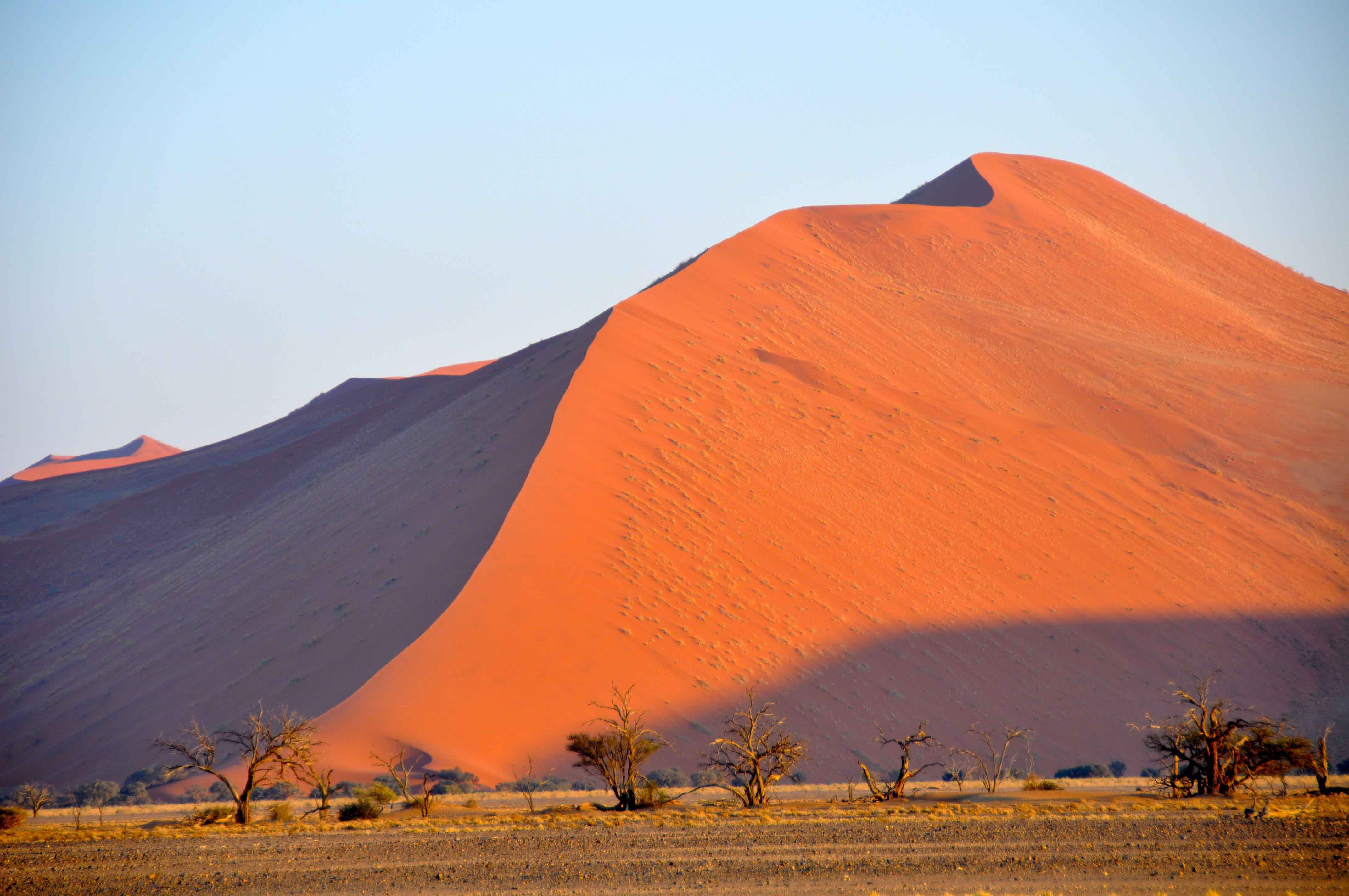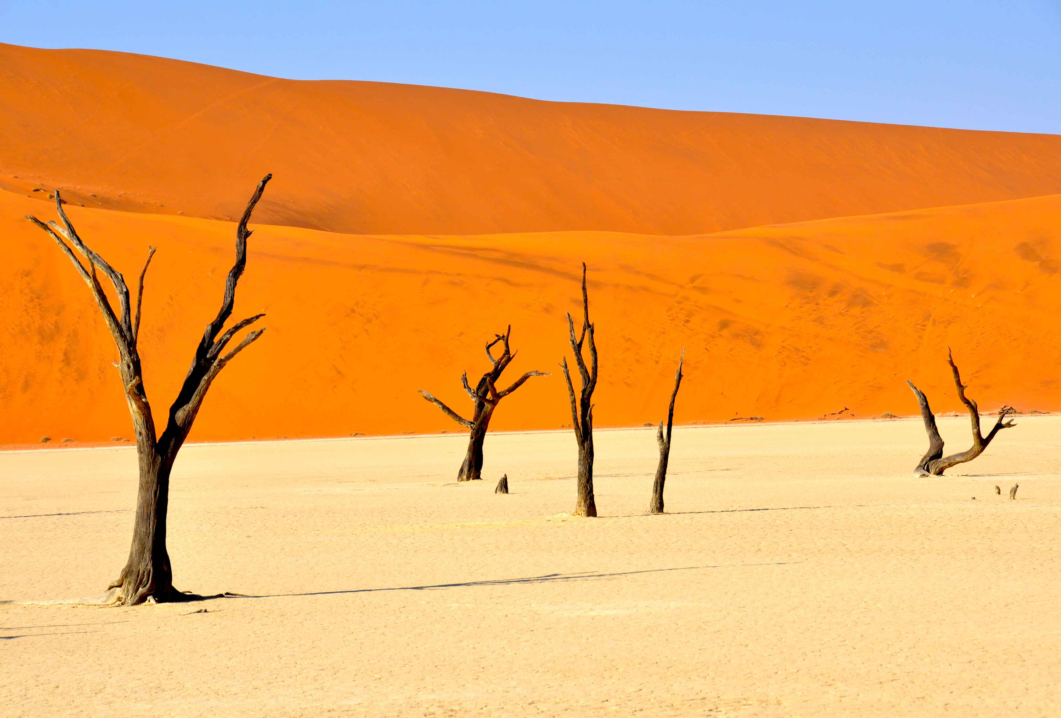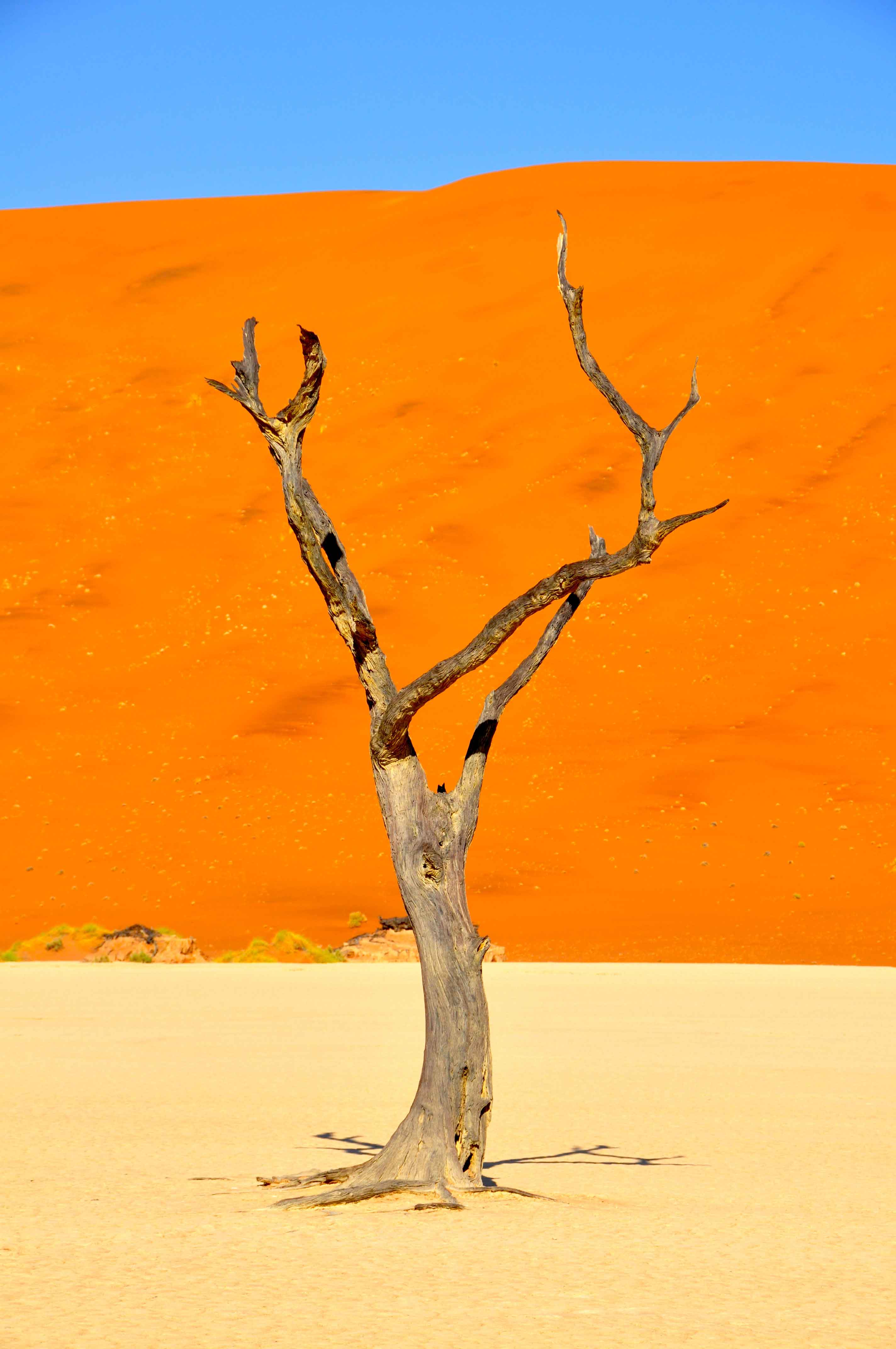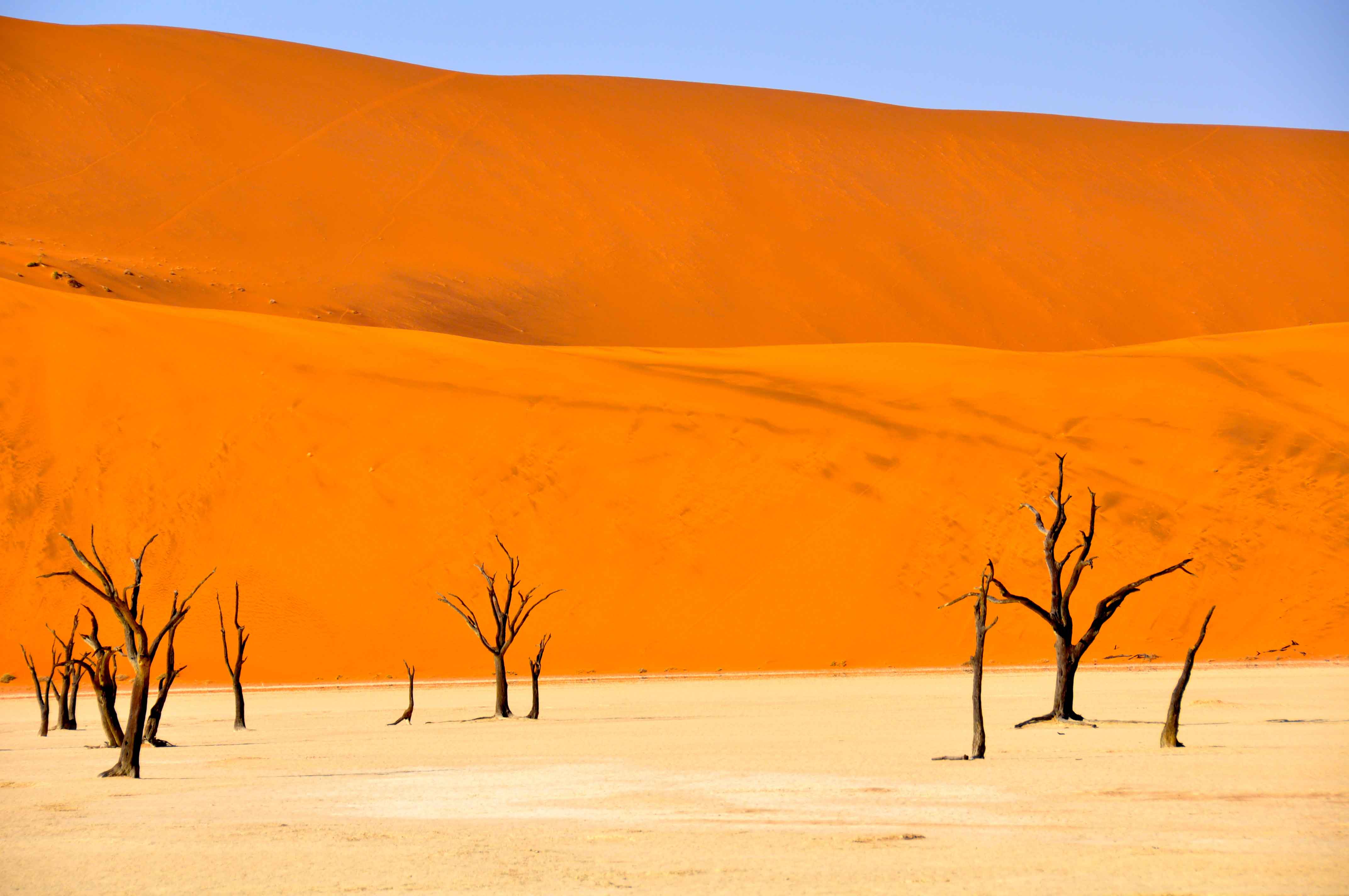 It is difficult to imagine anything surviving in such harsh conditions yet both plant life and animals can be found. Dead Vlei in a pan containing trees, that died when the dunes grew and the local climate was changed as a result.