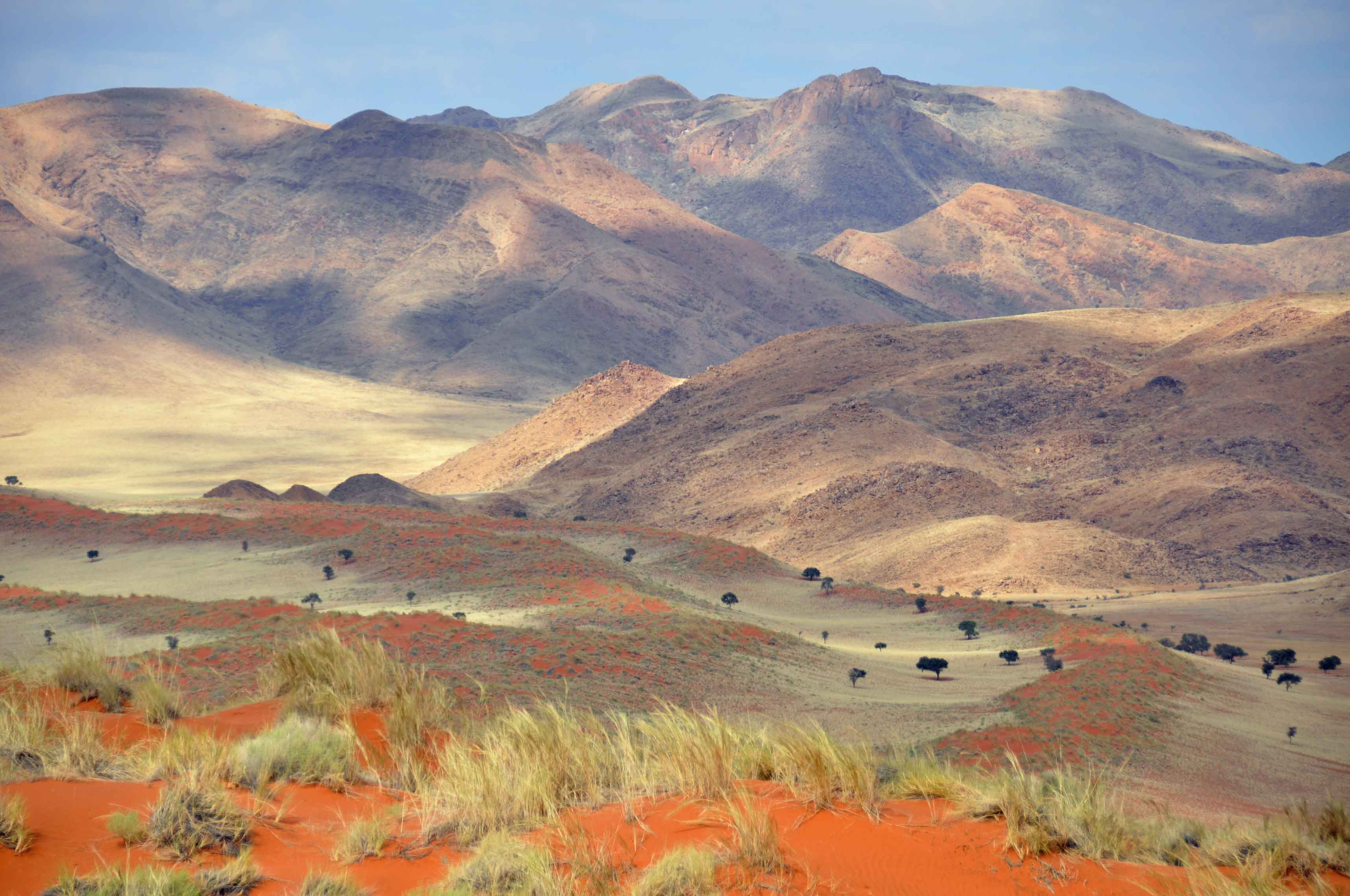 Virtually all facets of the Namib Desert are represented on the Reserve – sand and gravel plains and stretches of savanna alternate with mountain ranges and vegetated dune belts.