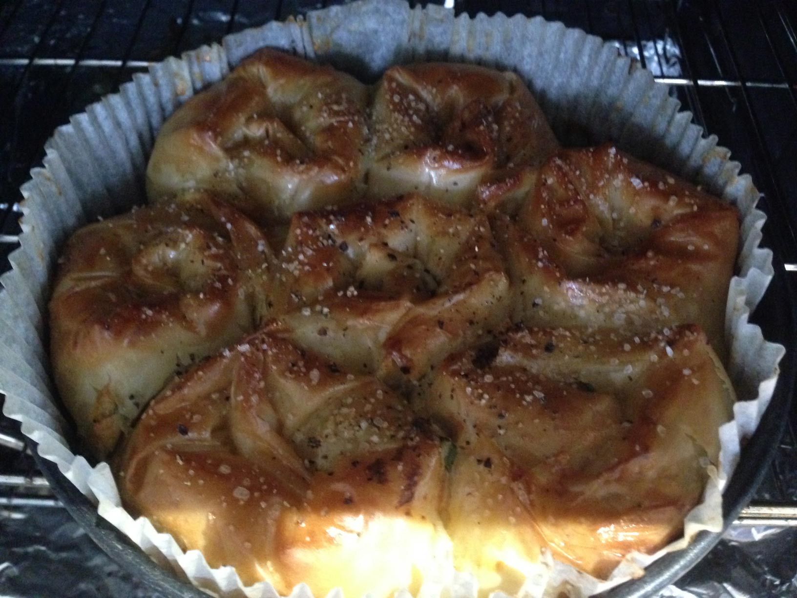 There really isn’t much of a recipe beyond find a bowl, mix some cream cheese with herbs of your choice (thyme works well) and wrap the mix in some filo pastry.